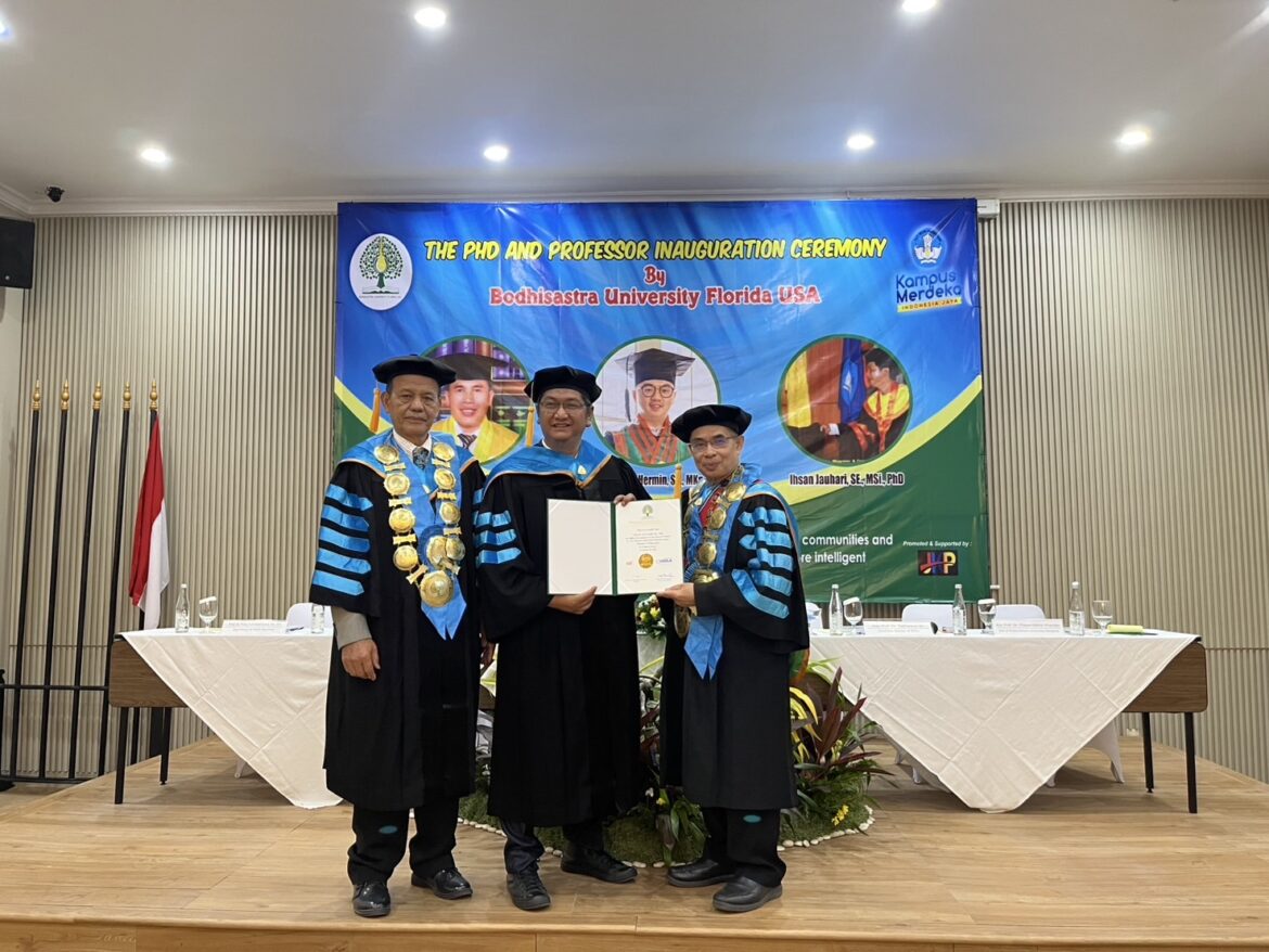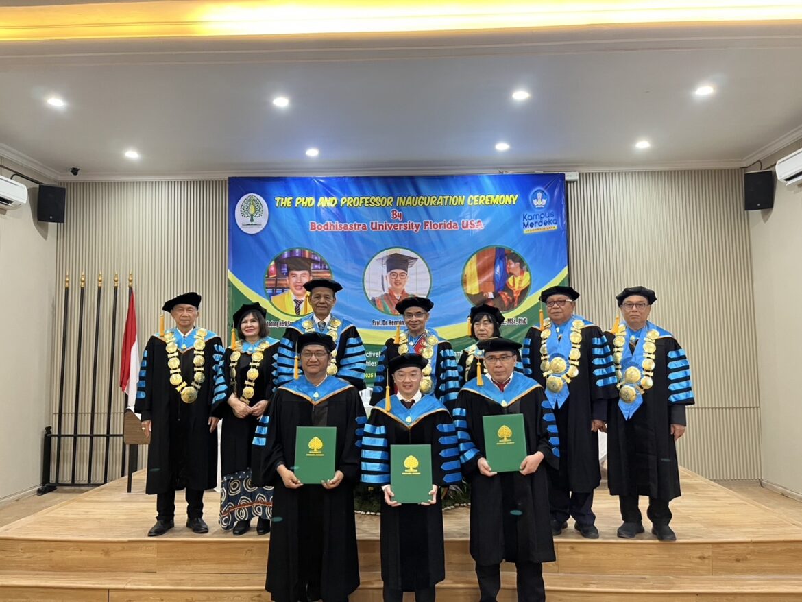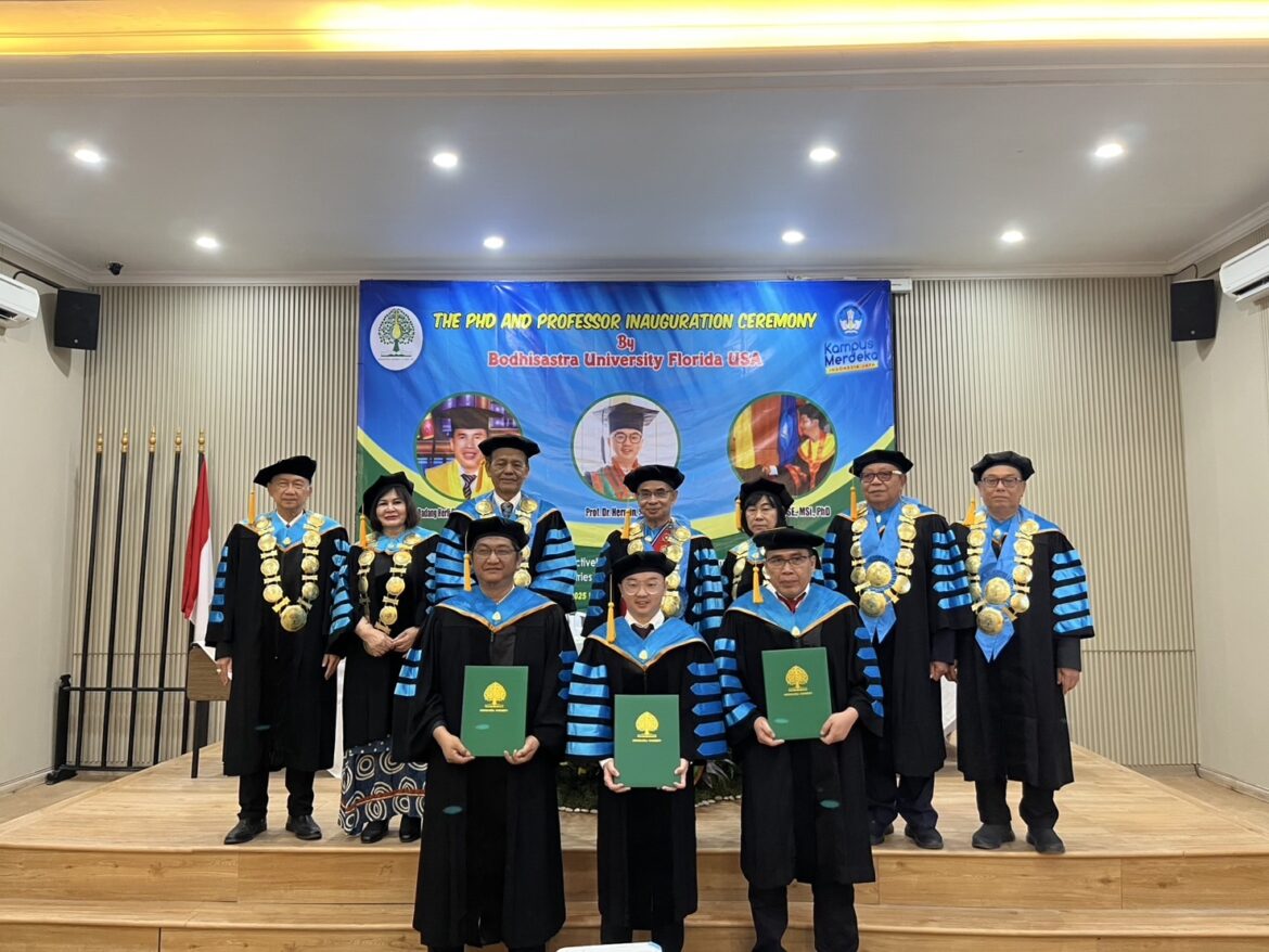the Office of the President for Indonesia and the BOU Indonesia Alumni Association conferred Professor positions to two Indonesians: • Dr. Dadang Herli Saputra, SIP., SH., SS., MH., MSi., MKn • Dr. Hermin, SH., MKn And an Honorary Doctorate was awarded to: • Ihsan Jauhari, SE., MSi The ceremony was conducted by the Chancellor and Senior Rector and Executive team from Thailand, with the recipients and their families celebrating this joyous occasion.