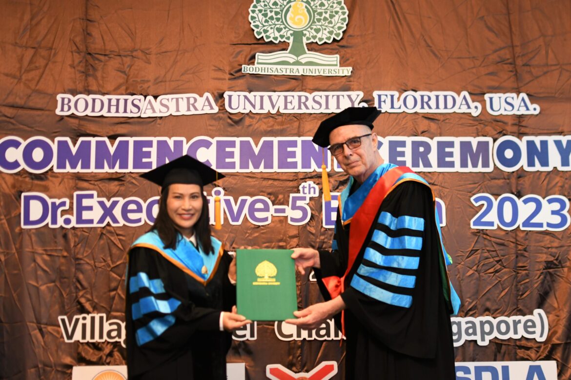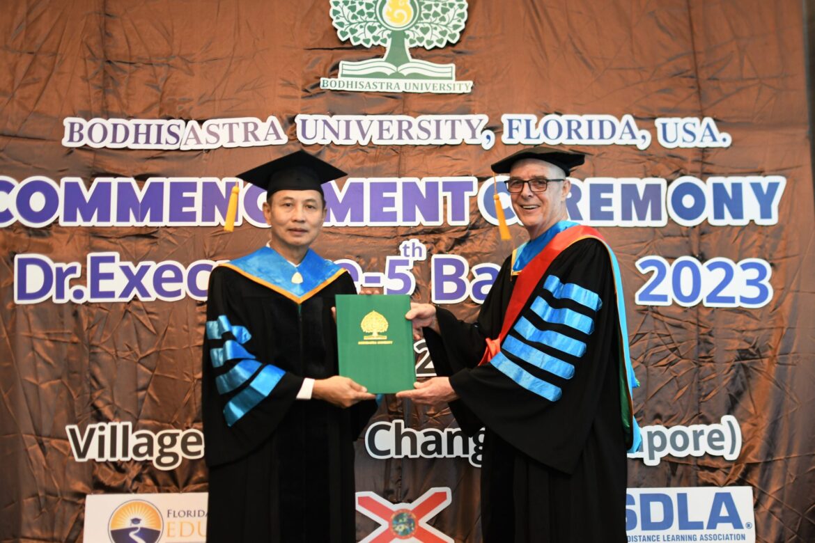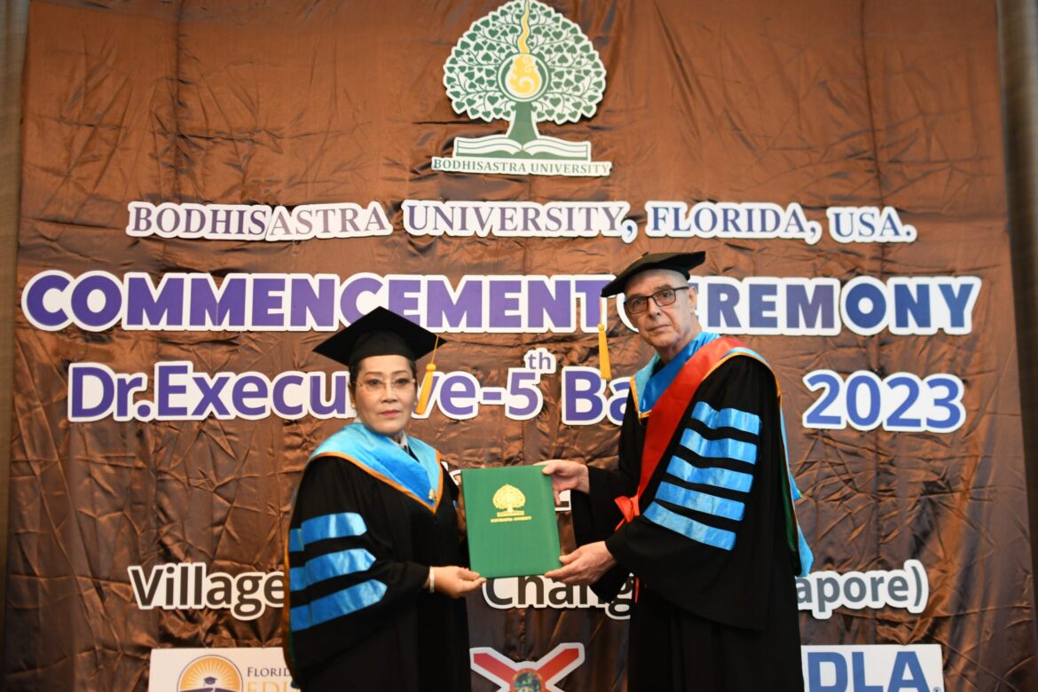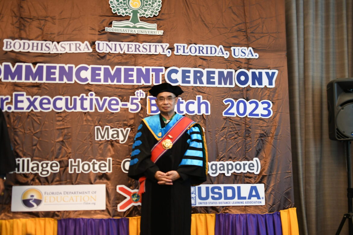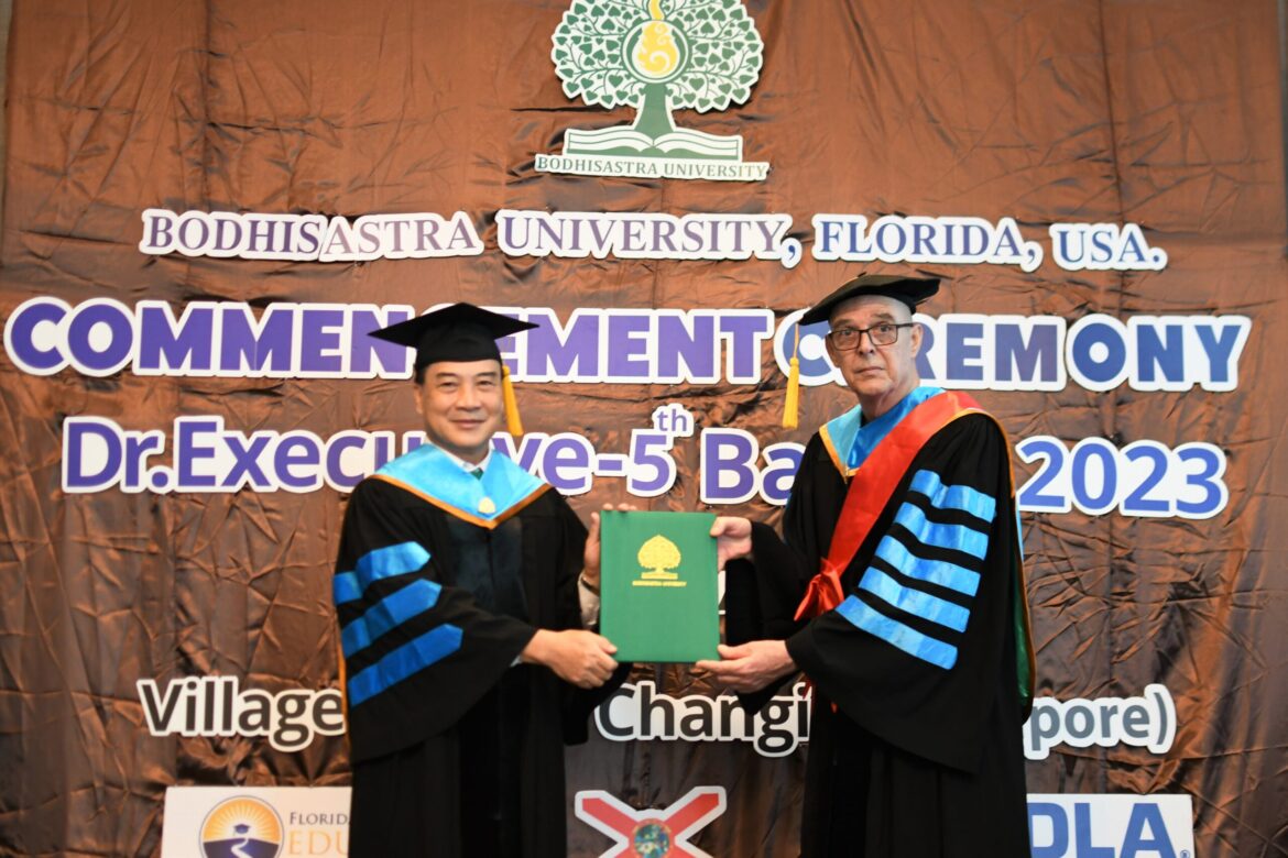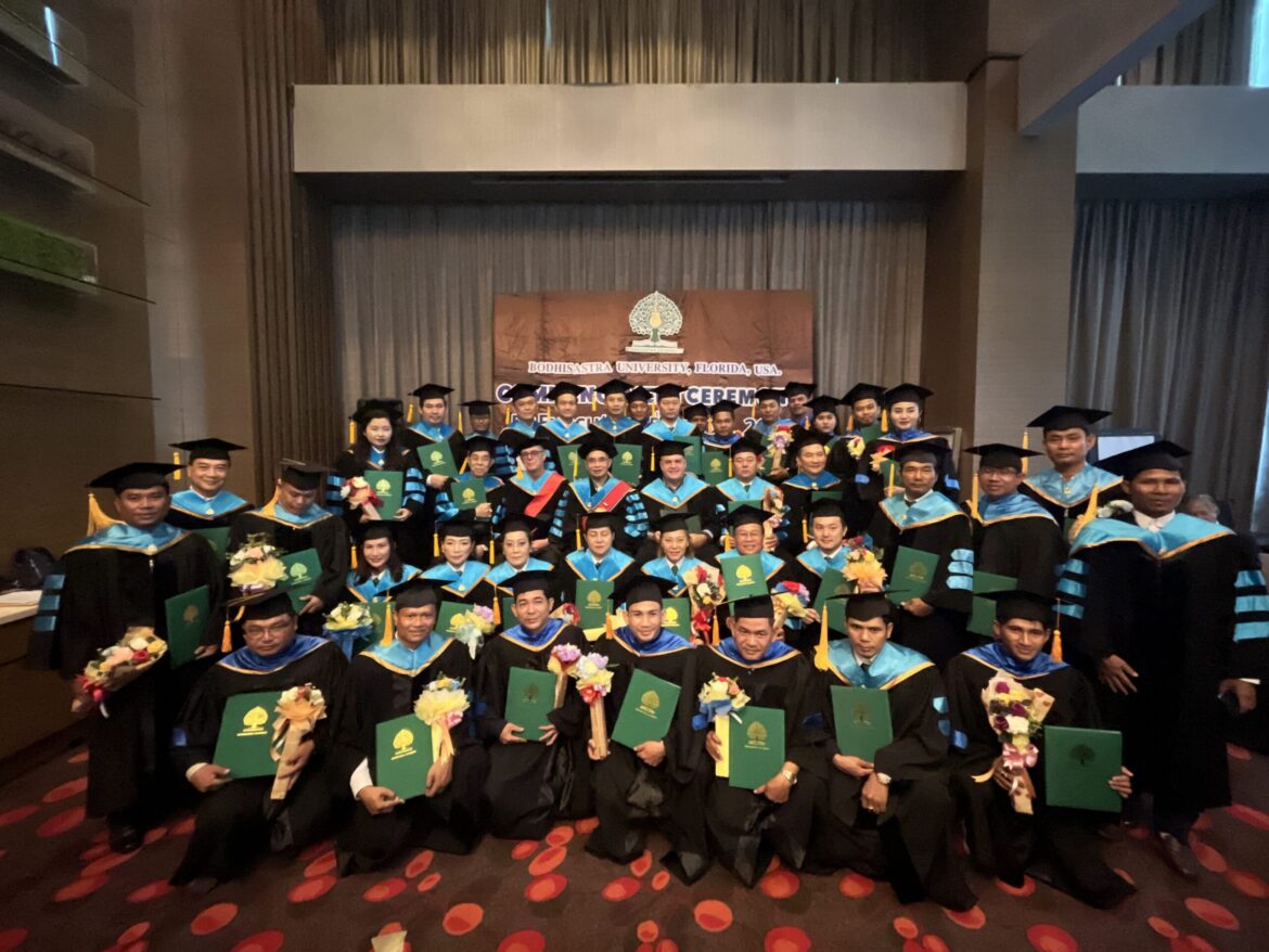BODHISASTRA UNIVERSITY FLORIDA, UNITED STATES OF AMERICA. By Prof. Dr. Sak Prasandee, CEO and executives organized a graduation ceremony for graduates of doctoral, master’s and bachelor’s degrees at Chang Yi Village Hotel, Singapore. The graduates were from Thailand, Cambodia, America and Hong Kong.