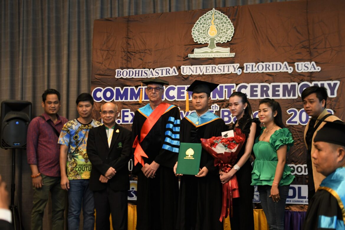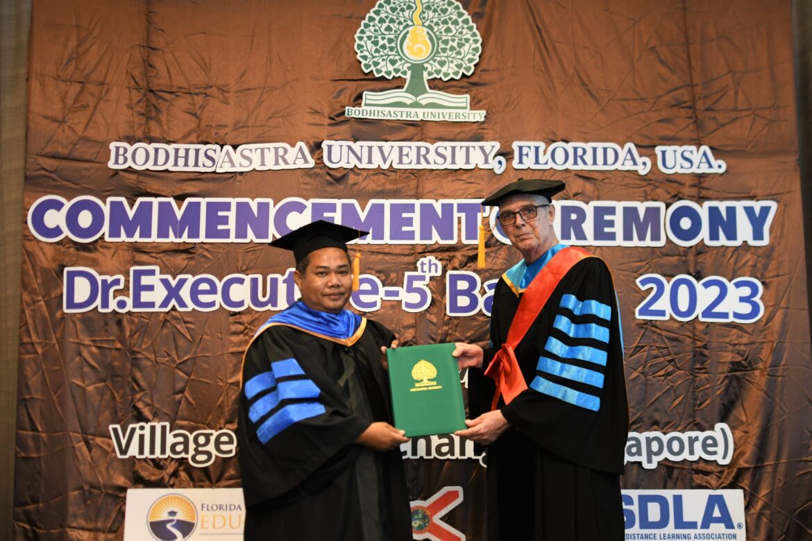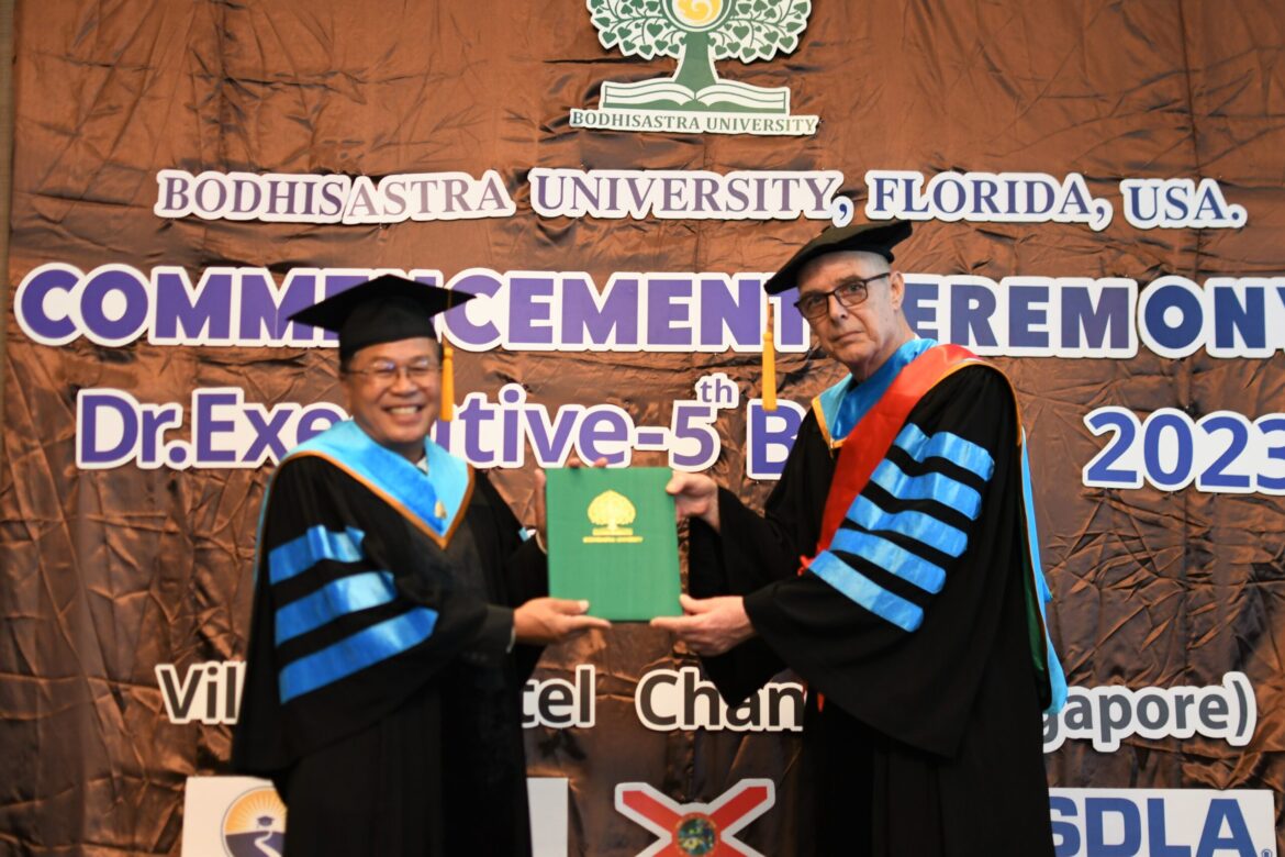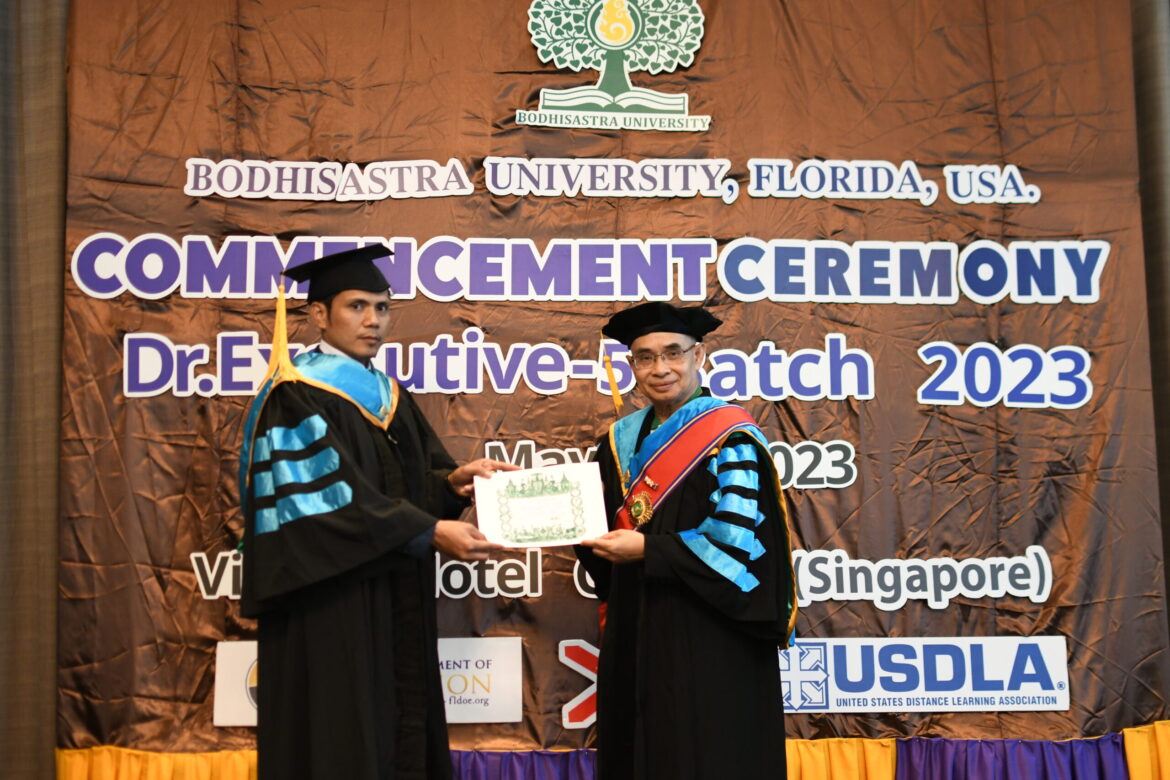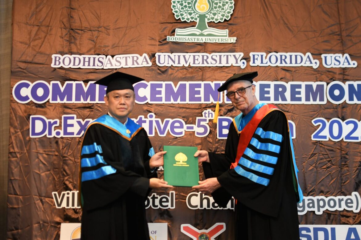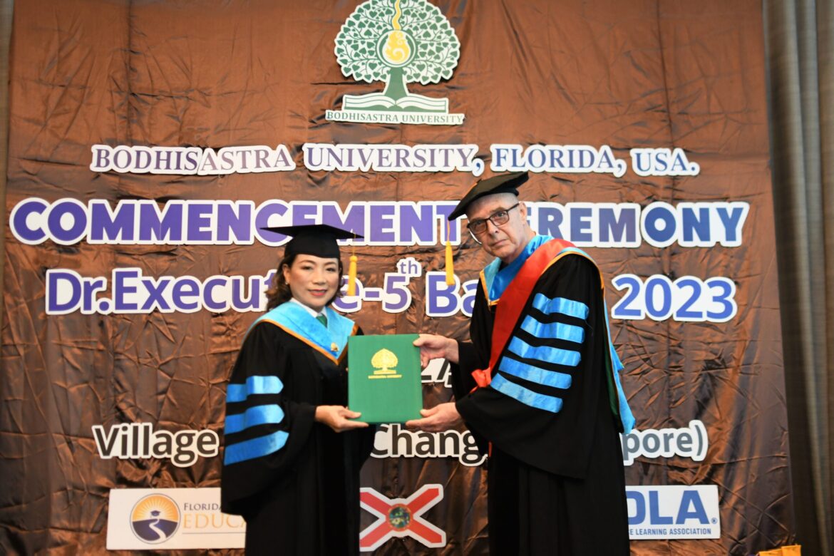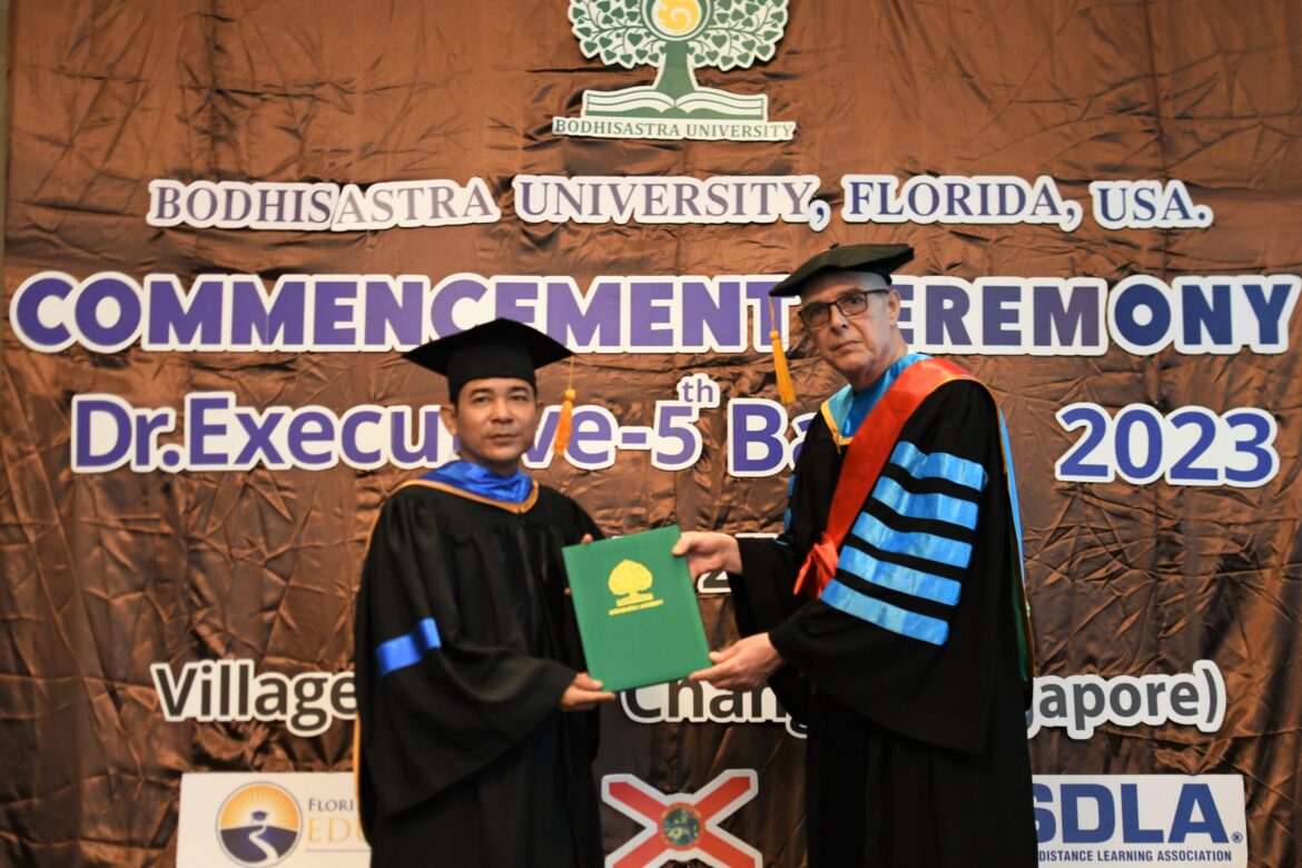 BODHISASTRA UNIVERSITY FLORIDA, UNITED STATES OF AMERICA. By Prof. Dr. Sak Prasandee, CEO and executives organized a graduation ceremony for graduates of doctoral, master’s and bachelor’s degrees at Chang Yi Village Hotel, Singapore. The graduates were from Thailand, Cambodia, America and Hong Kong.