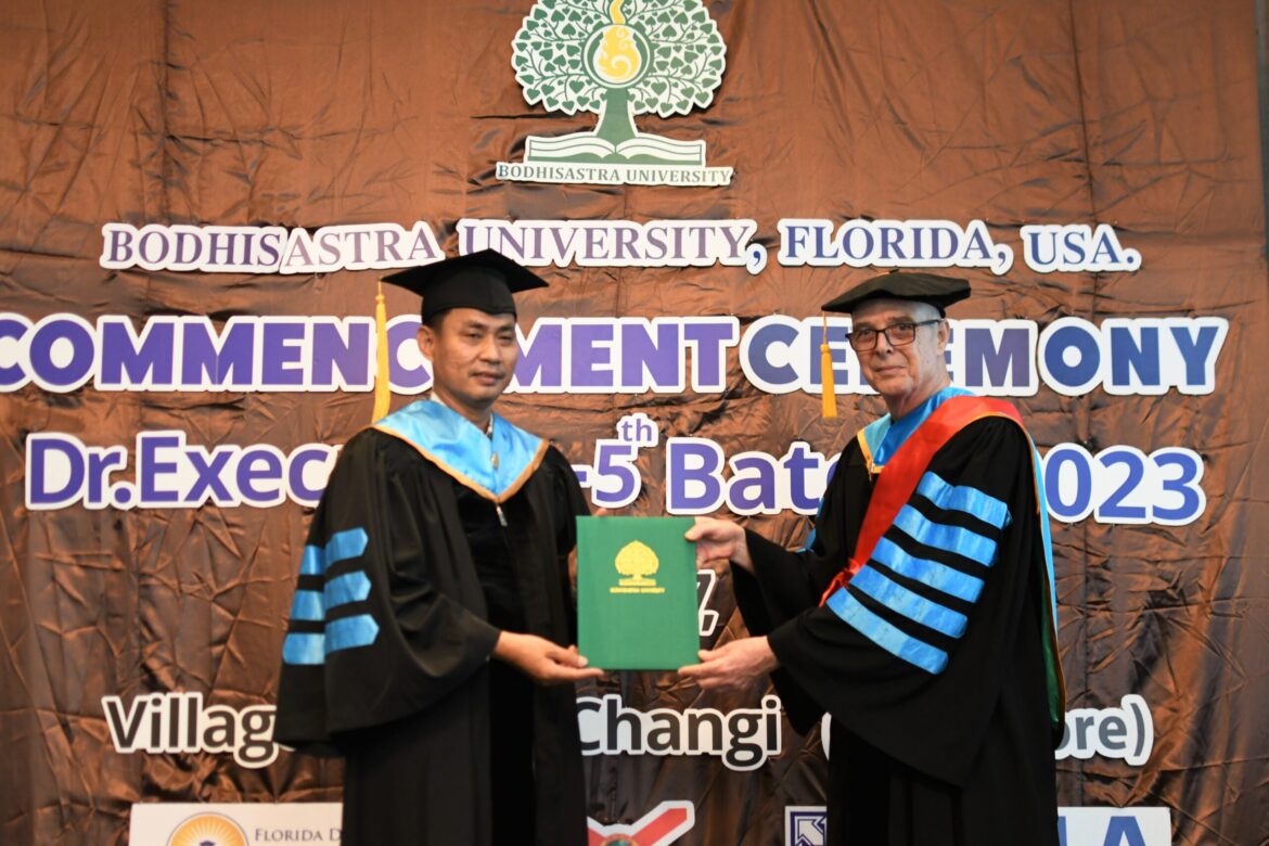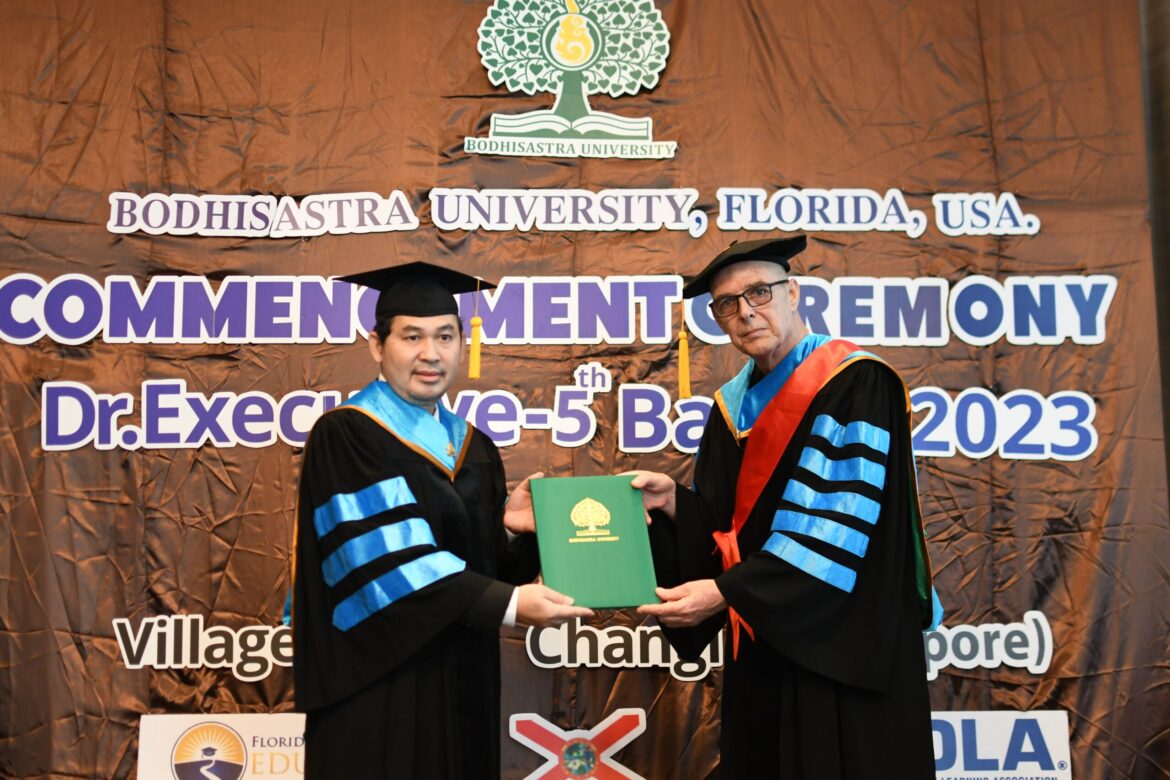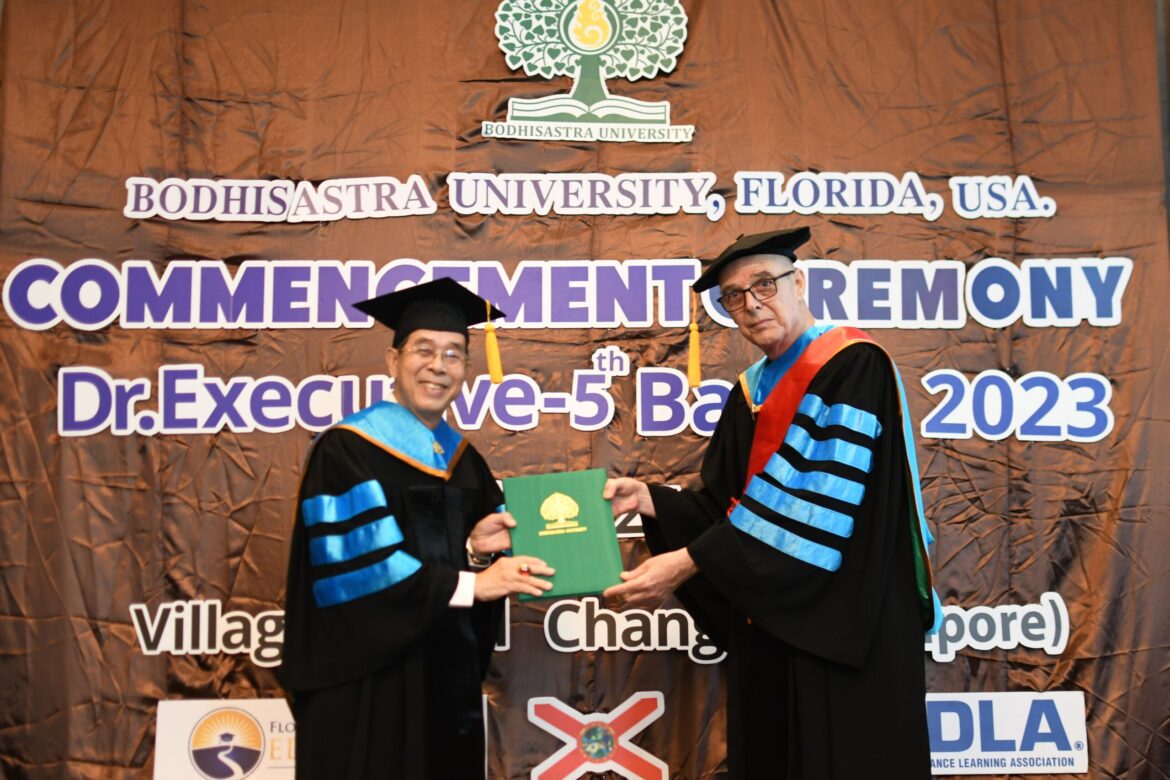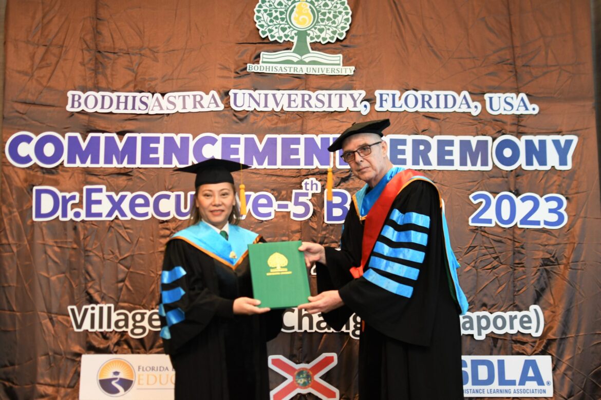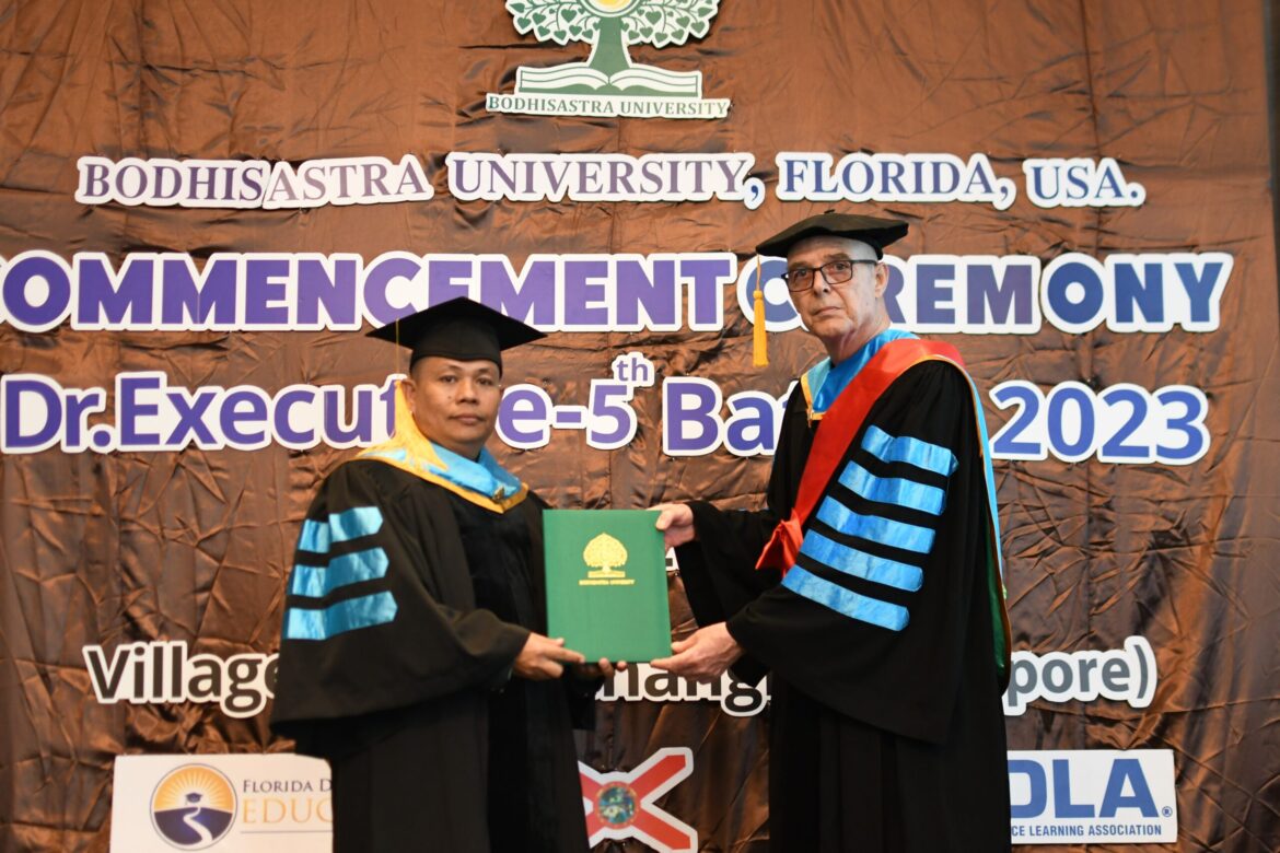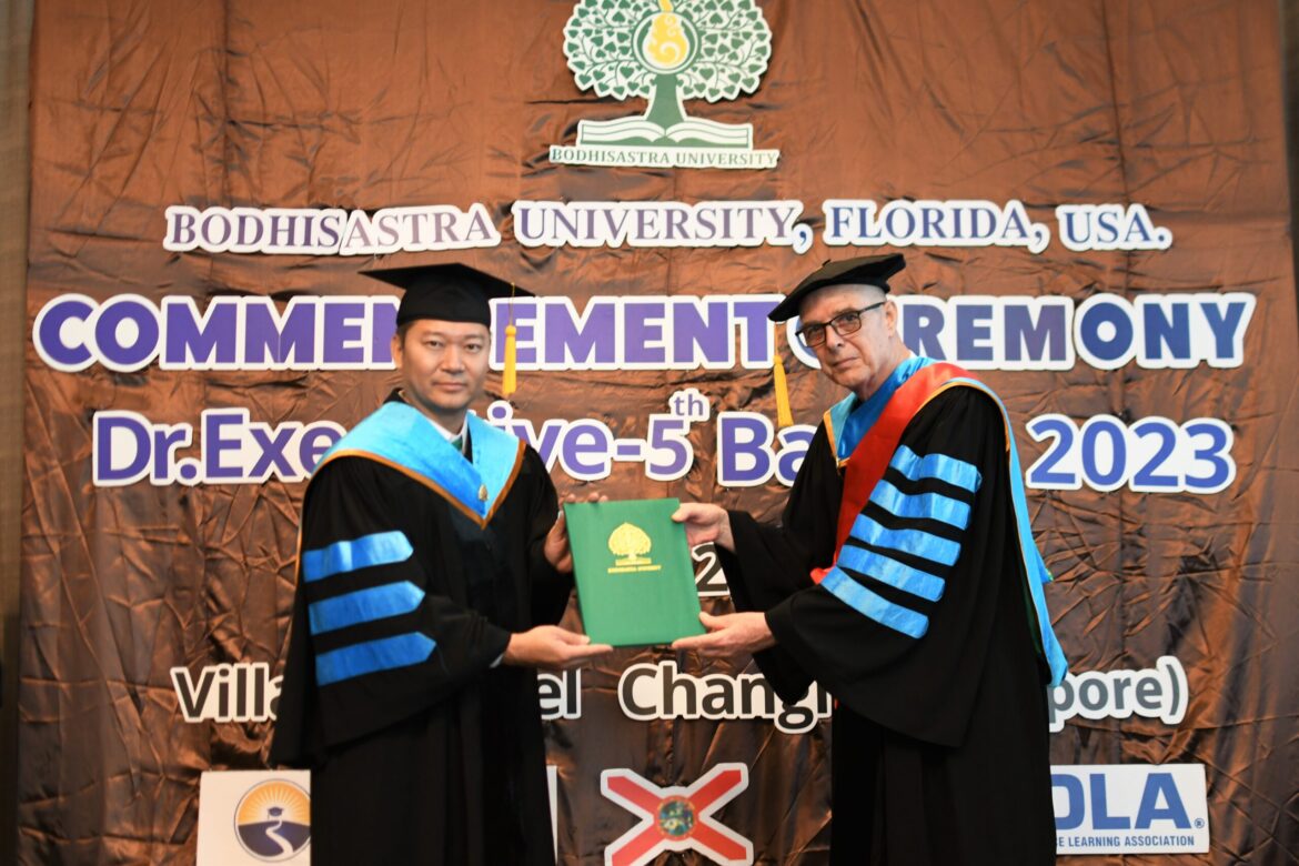 BODHISASTRA UNIVERSITY FLORIDA, UNITED STATES OF AMERICA. By Prof. Dr. Sak Prasandee, CEO and executives organized a graduation ceremony for graduates of doctoral, master’s and bachelor’s degrees at Chang Yi Village Hotel, Singapore. The graduates were from Thailand, Cambodia, America and Hong Kong.