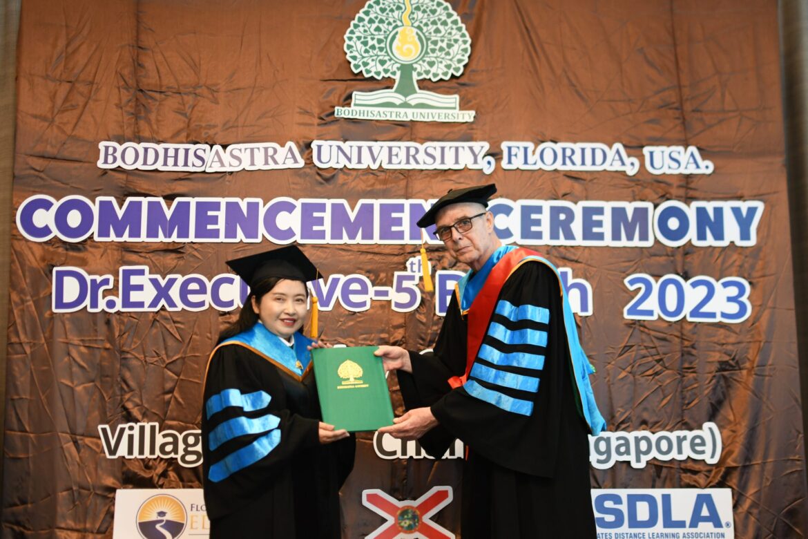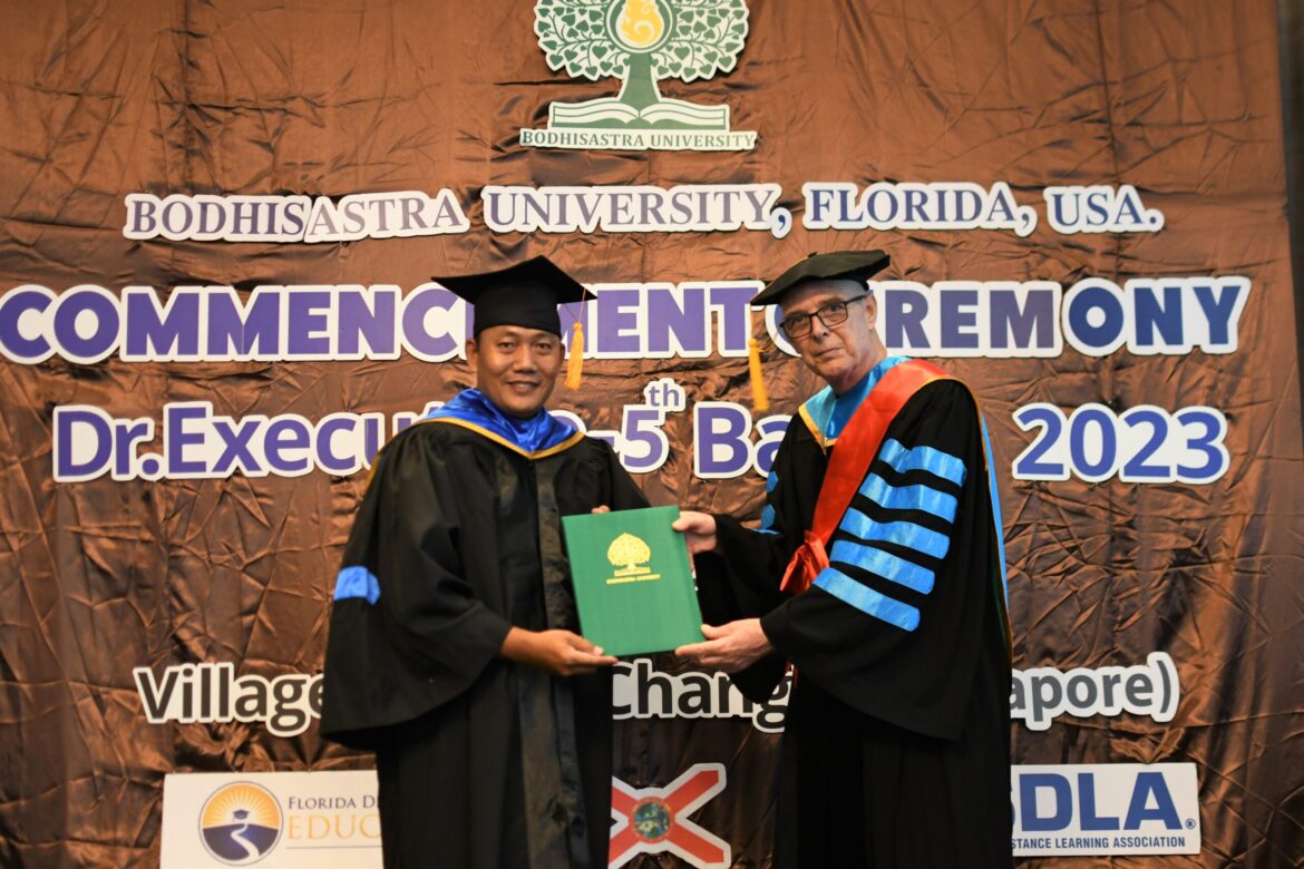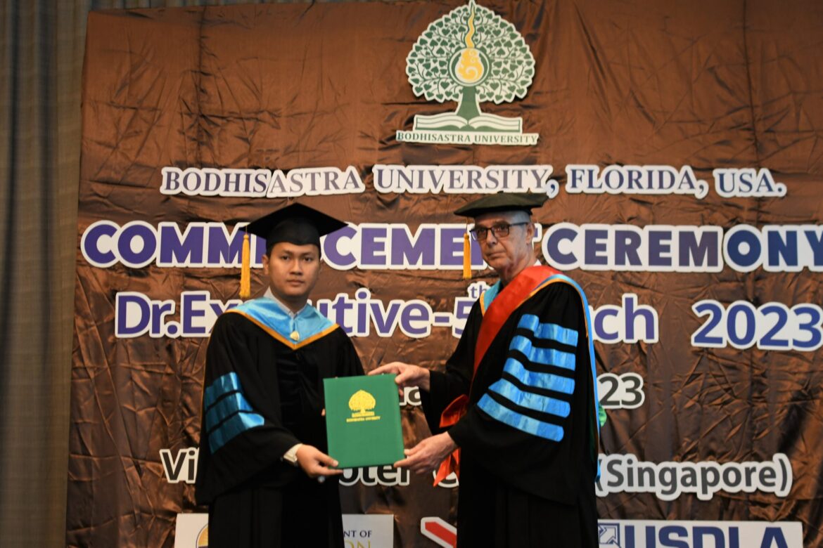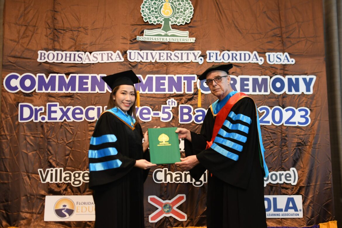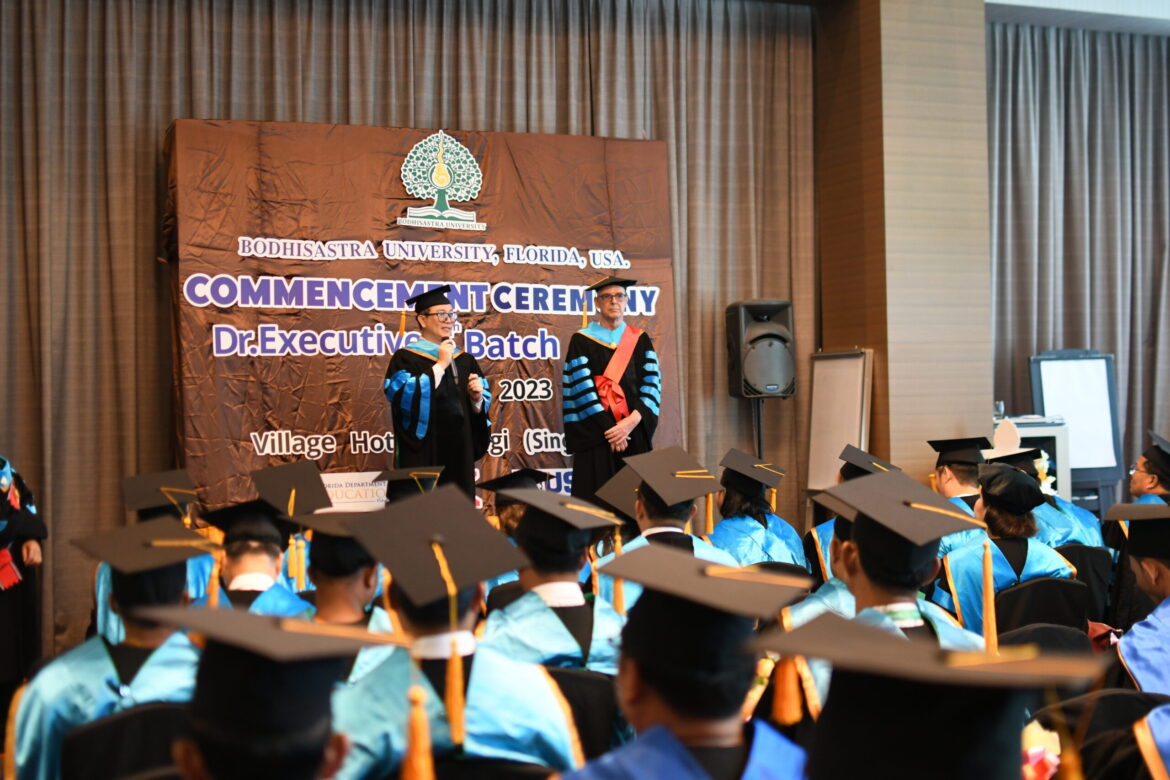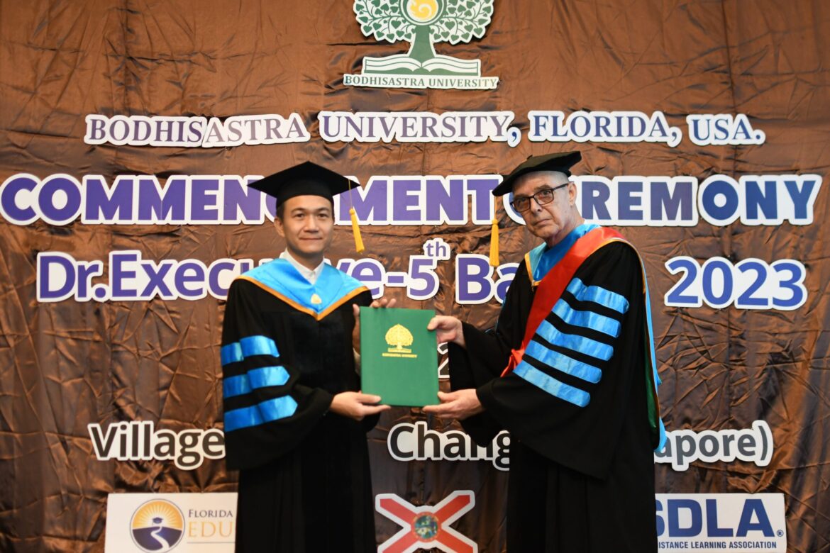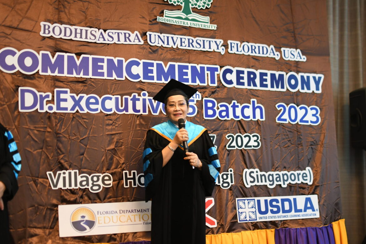 BODHISASTRA UNIVERSITY FLORIDA, UNITED STATES OF AMERICA. By Prof. Dr. Sak Prasandee, CEO and executives organized a graduation ceremony for graduates of doctoral, master’s and bachelor’s degrees at Chang Yi Village Hotel, Singapore. The graduates were from Thailand, Cambodia, America and Hong Kong.