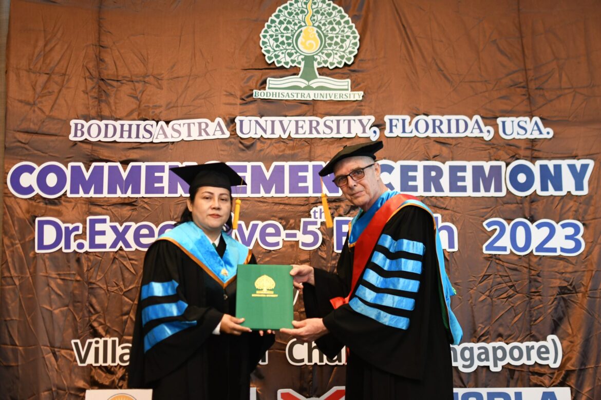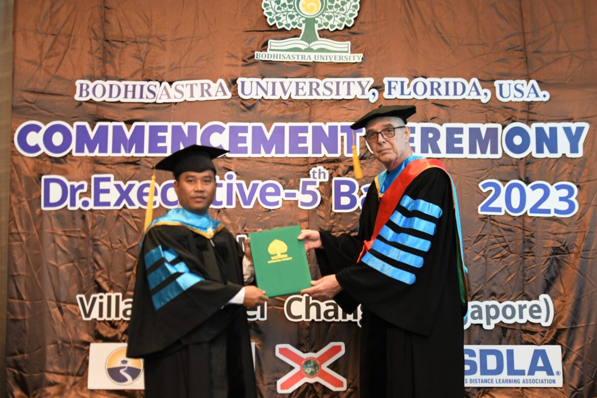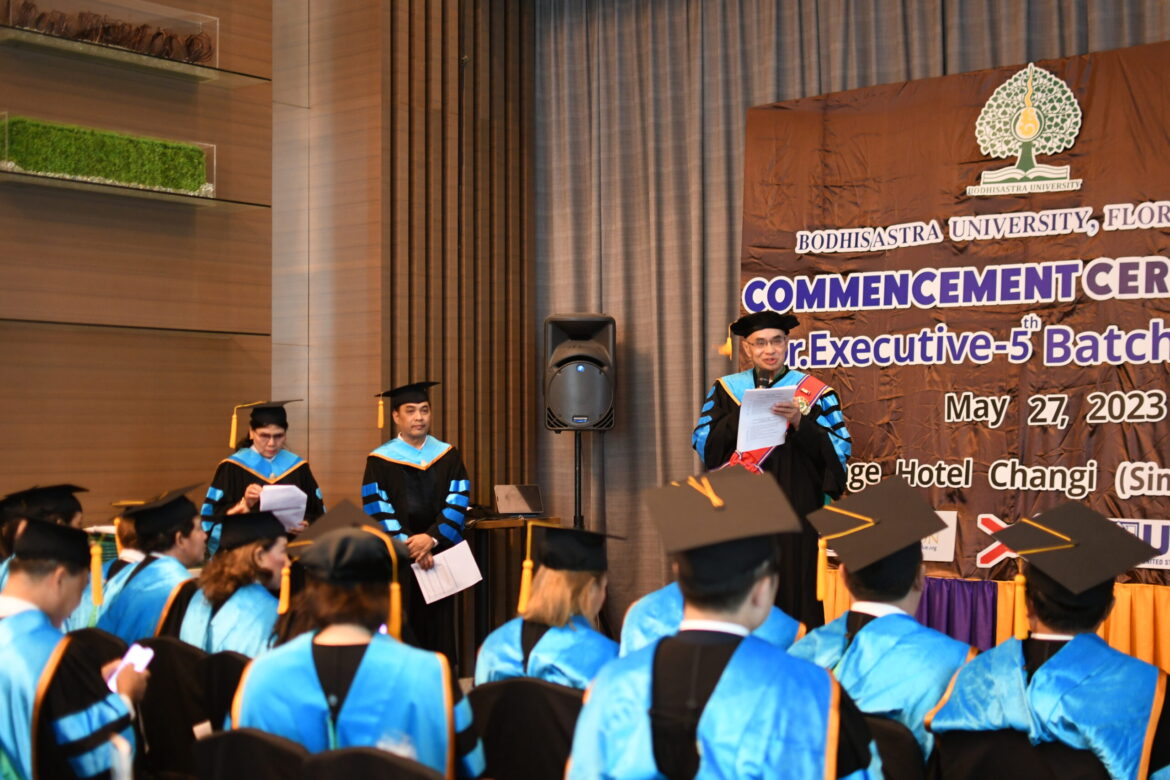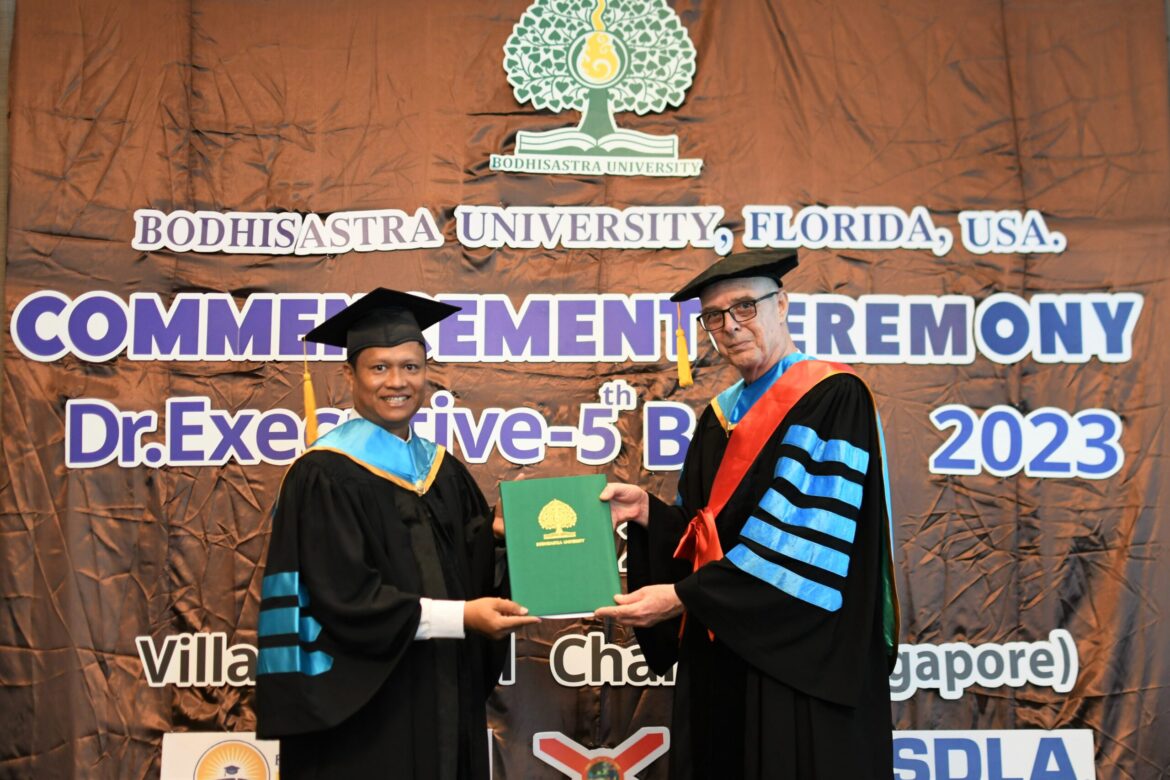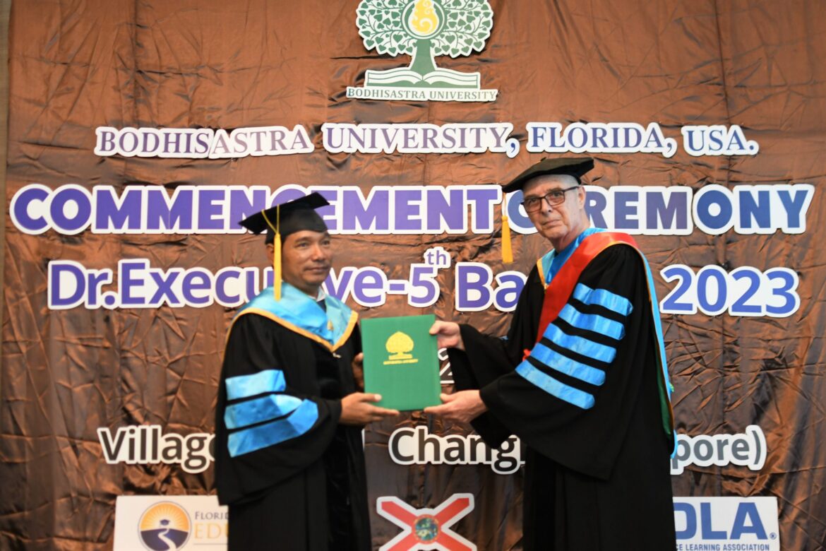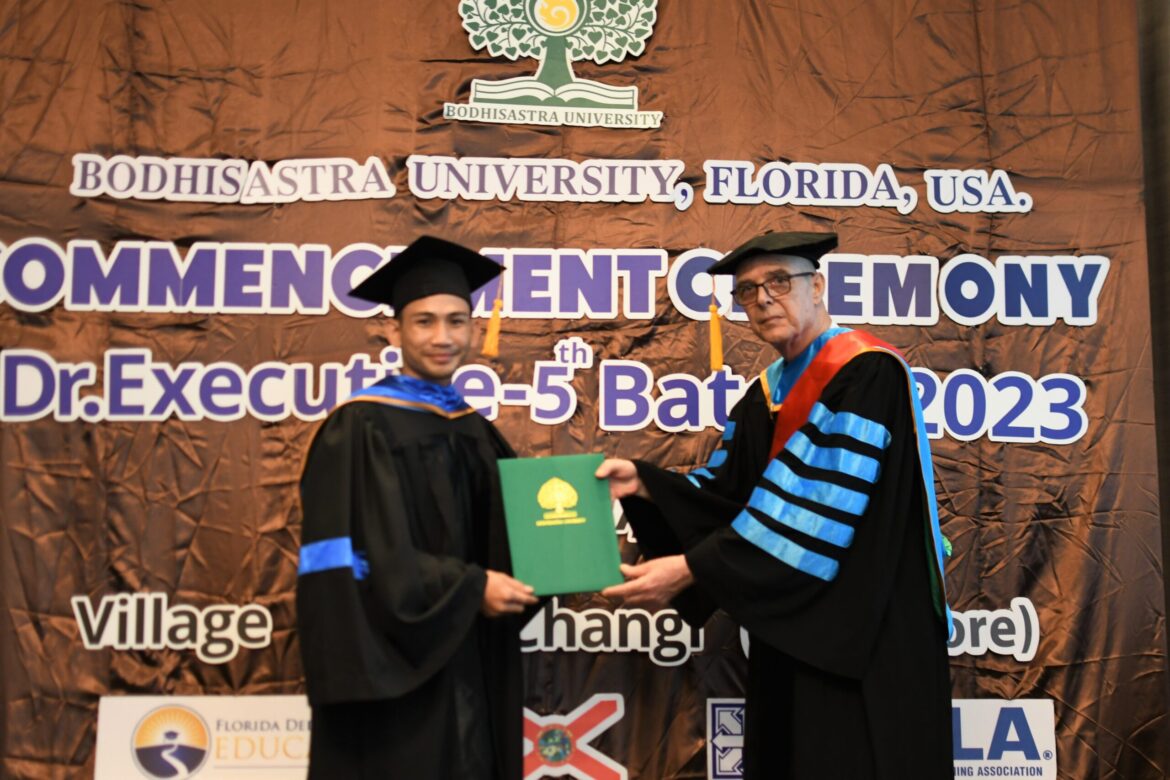 BODHISASTRA UNIVERSITY FLORIDA, UNITED STATES OF AMERICA. By Prof. Dr. Sak Prasandee, CEO and executives organized a graduation ceremony for graduates of doctoral, master’s and bachelor’s degrees at Chang Yi Village Hotel, Singapore. The graduates were from Thailand, Cambodia, America and Hong Kong.