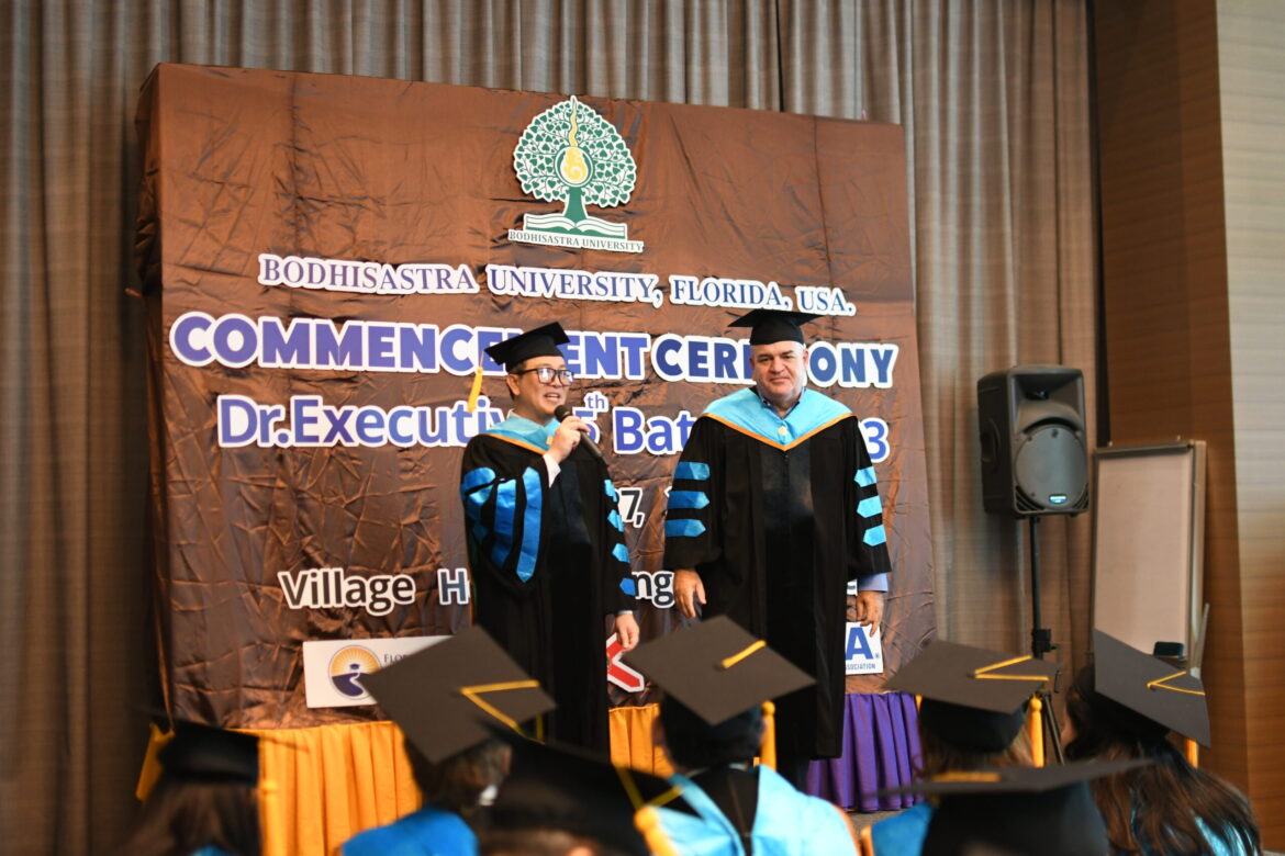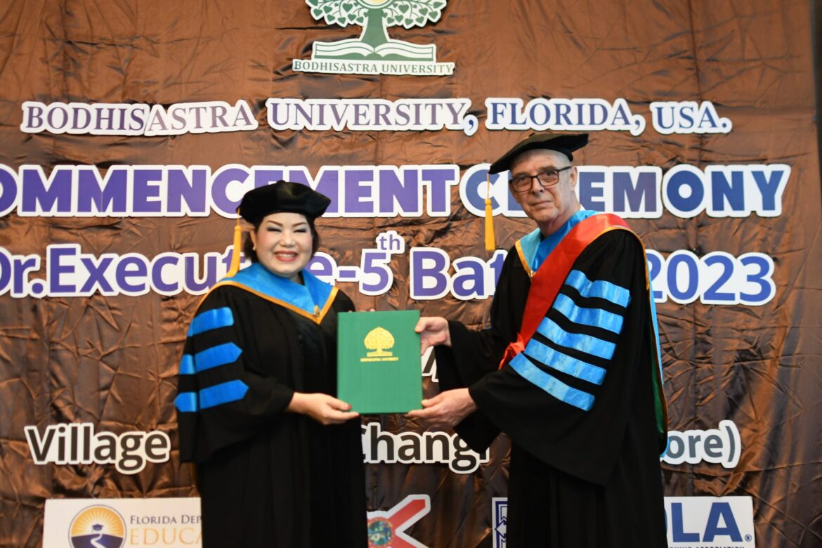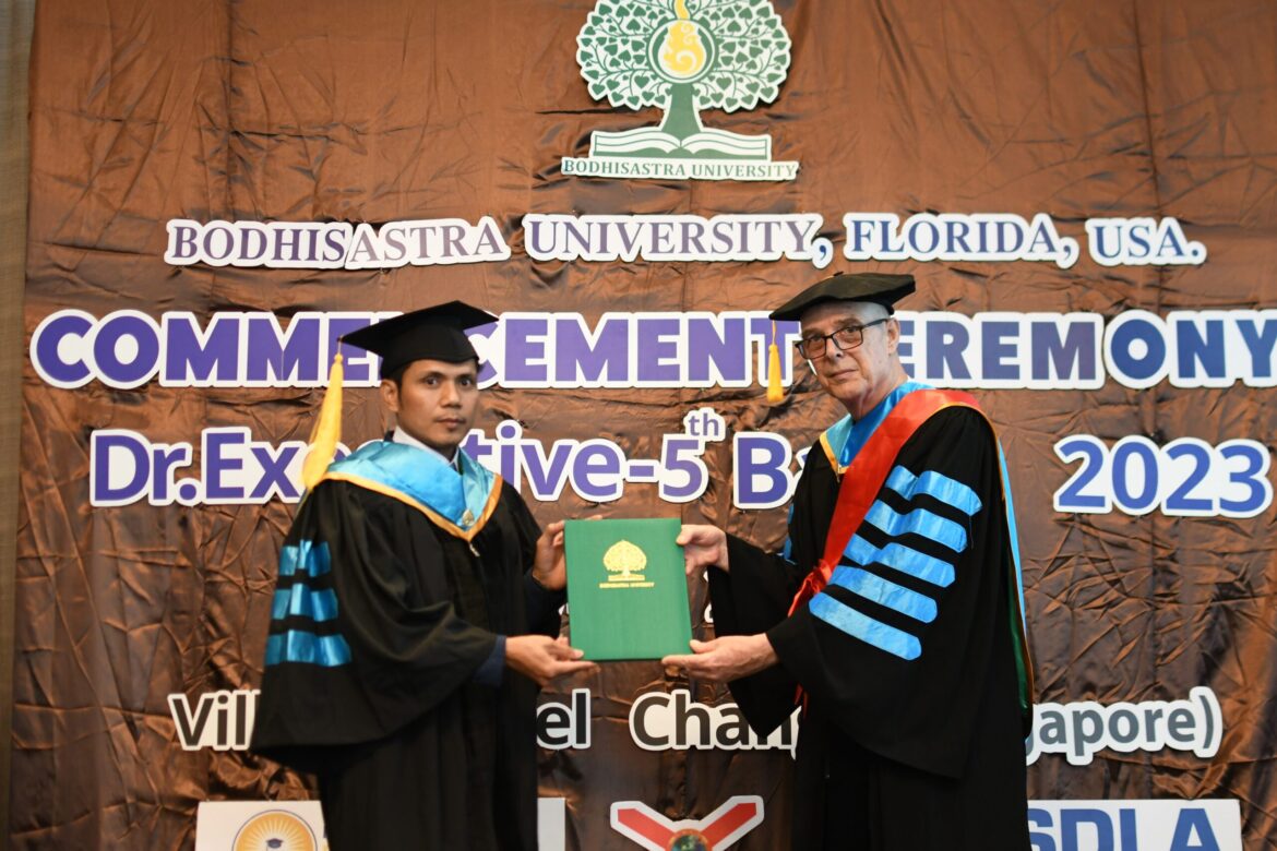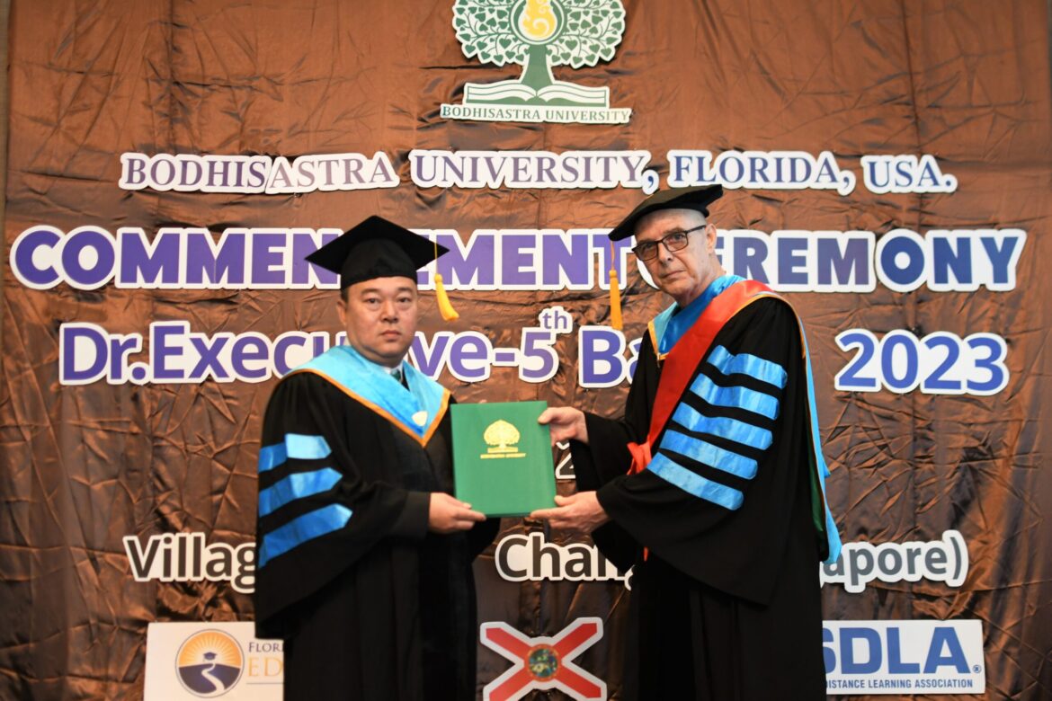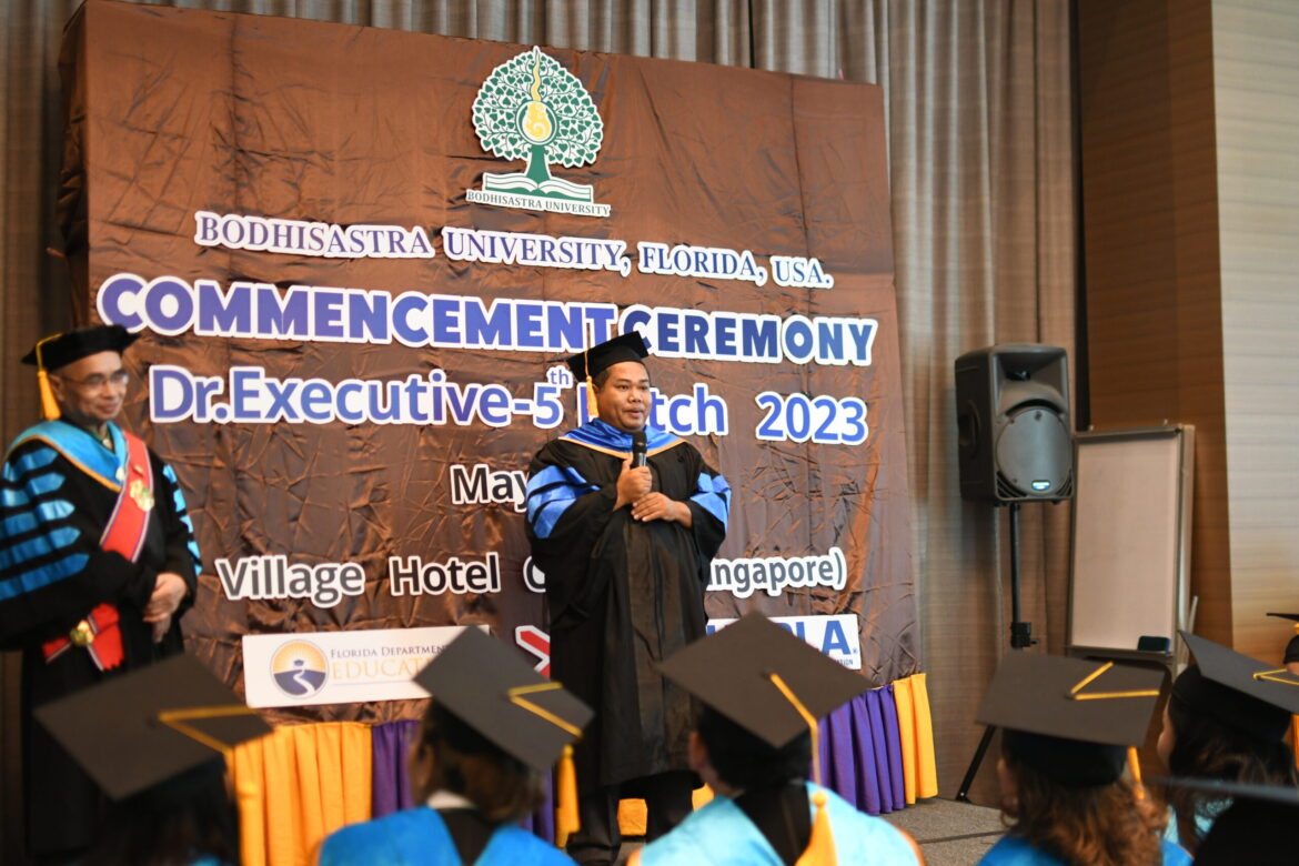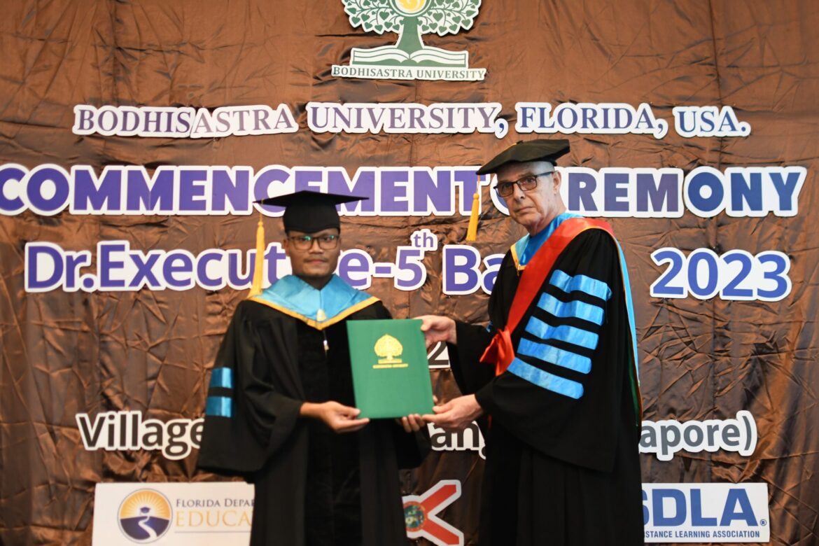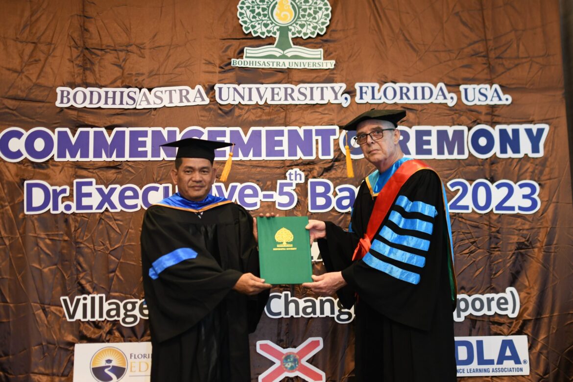 BODHISASTRA UNIVERSITY FLORIDA, UNITED STATES OF AMERICA. By Prof. Dr. Sak Prasandee, CEO and executives organized a graduation ceremony for graduates of doctoral, master’s and bachelor’s degrees at Chang Yi Village Hotel, Singapore. The graduates were from Thailand, Cambodia, America and Hong Kong.