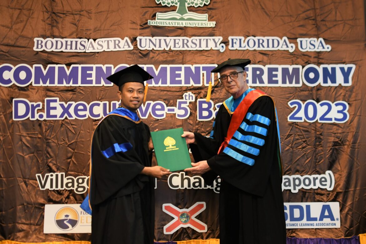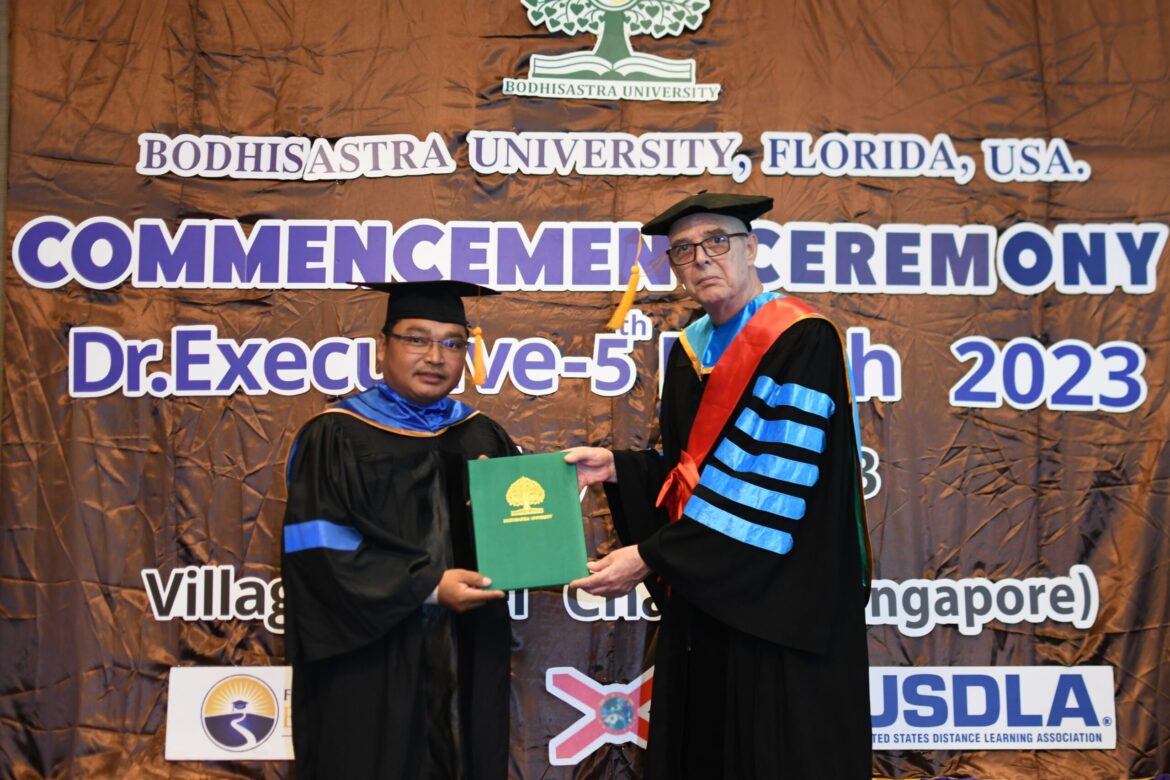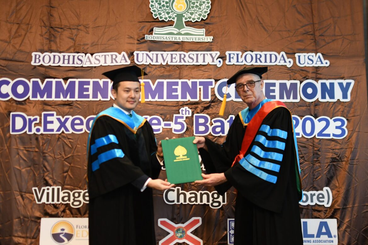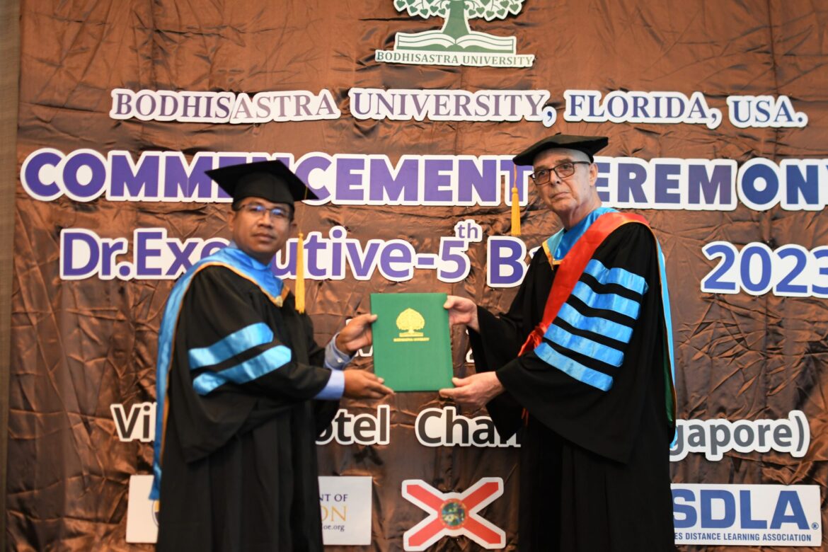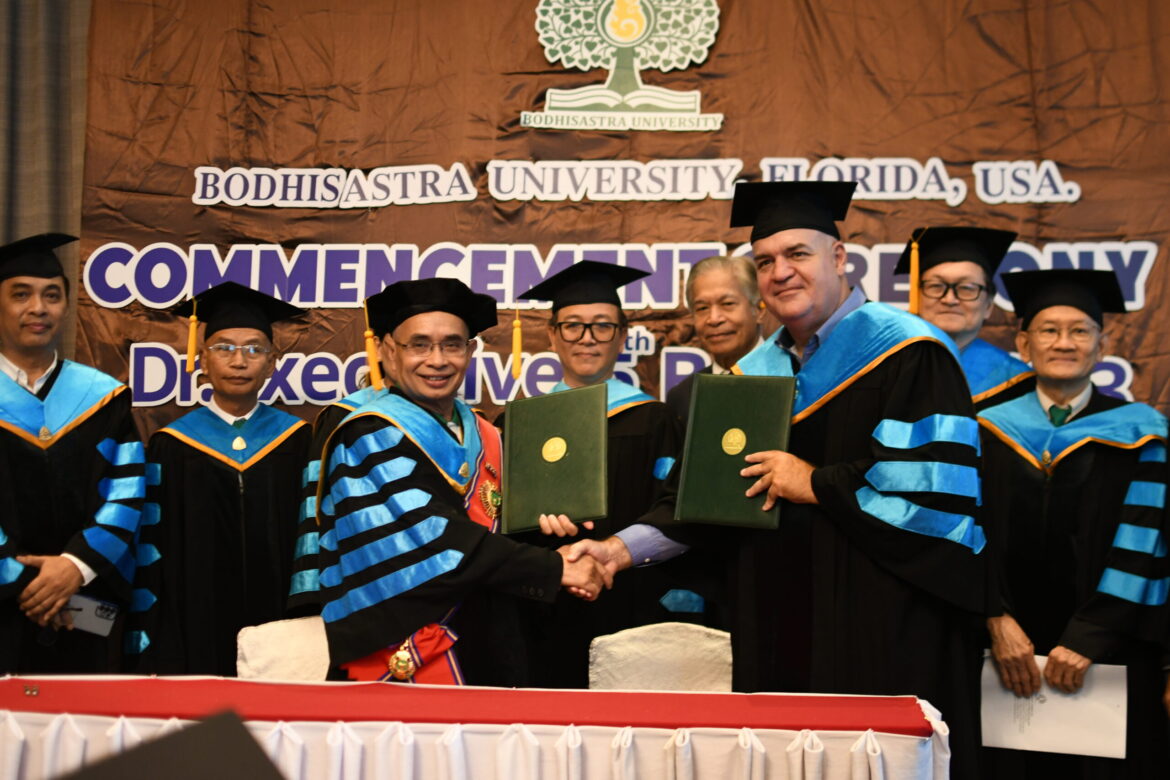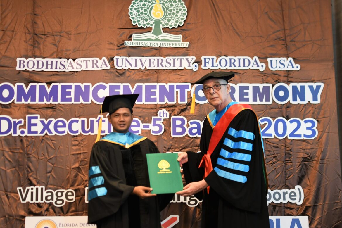 BODHISASTRA UNIVERSITY FLORIDA, UNITED STATES OF AMERICA. By Prof. Dr. Sak Prasandee, CEO and executives organized a graduation ceremony for graduates of doctoral, master’s and bachelor’s degrees at Chang Yi Village Hotel, Singapore. The graduates were from Thailand, Cambodia, America and Hong Kong.