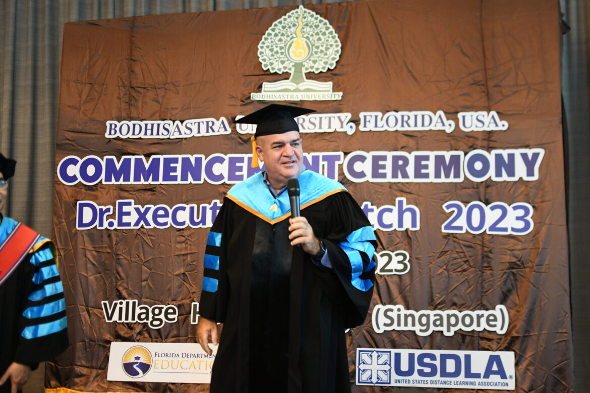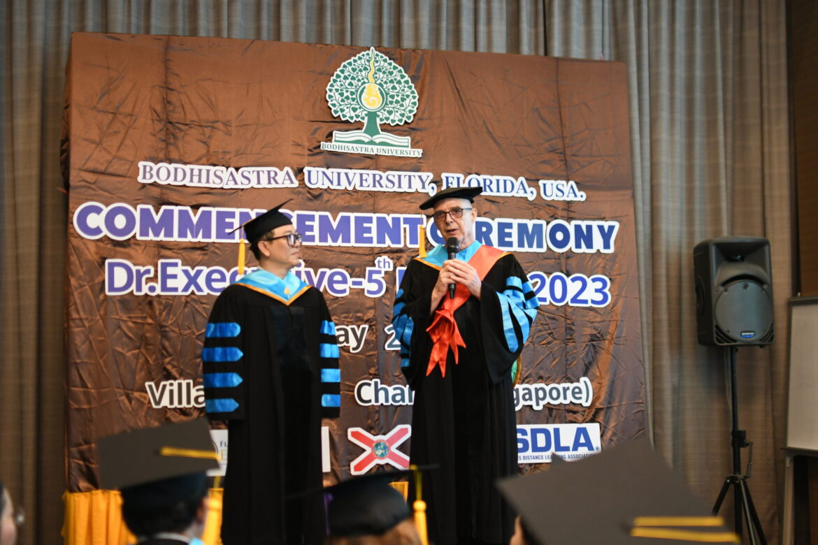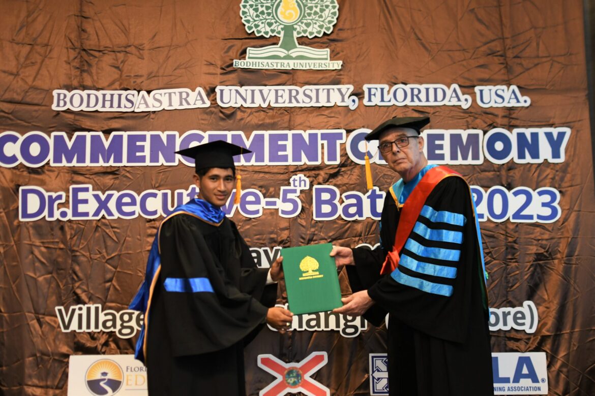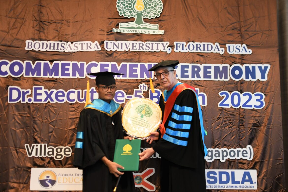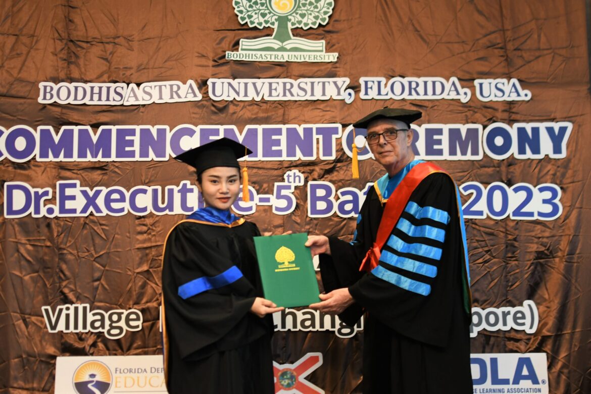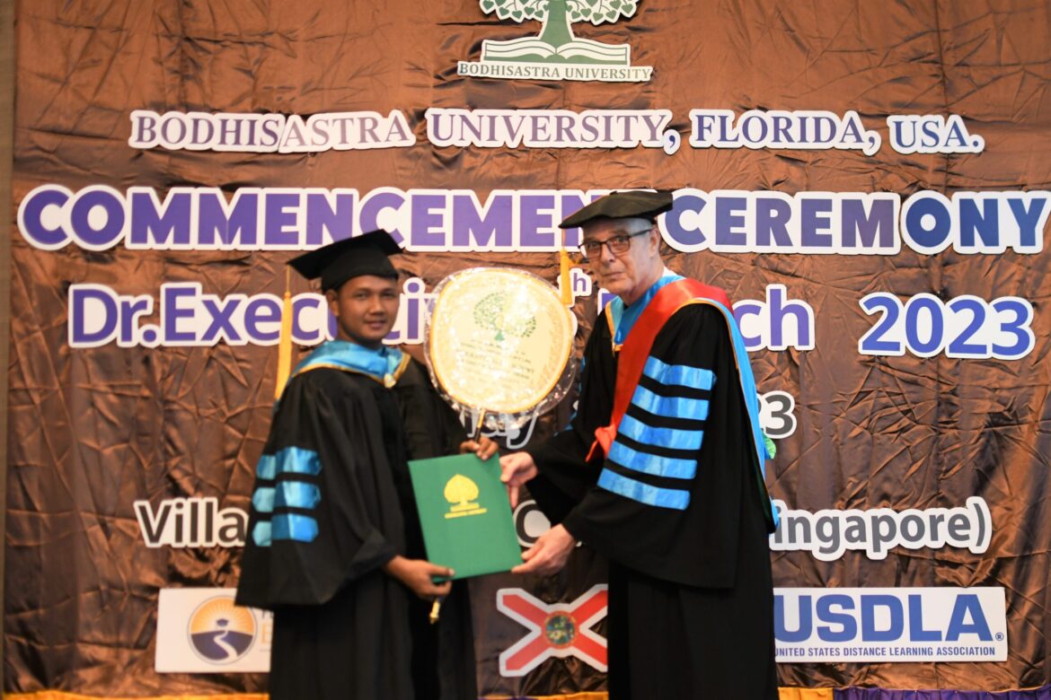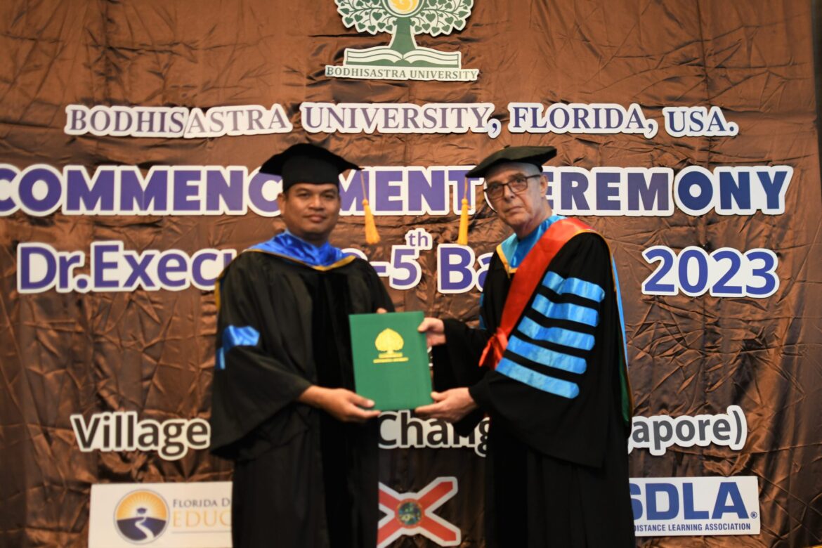 BODHISASTRA UNIVERSITY FLORIDA, UNITED STATES OF AMERICA. By Prof. Dr. Sak Prasandee, CEO and executives organized a graduation ceremony for graduates of doctoral, master’s and bachelor’s degrees at Chang Yi Village Hotel, Singapore. The graduates were from Thailand, Cambodia, America and Hong Kong.