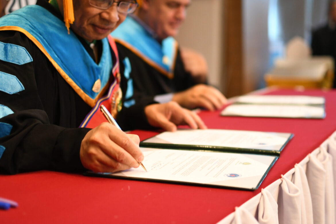 Along with the signing of the MOU. between Dr. Bruce, President of Paris University for International Efucation. and BOU. By Prof. Dr. Sak Prasandee, CEO. There will be further joint education.