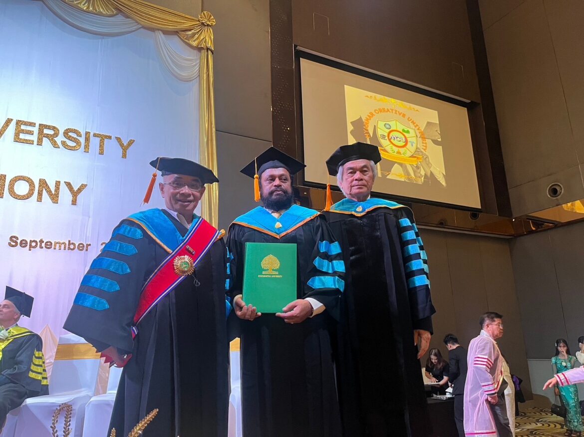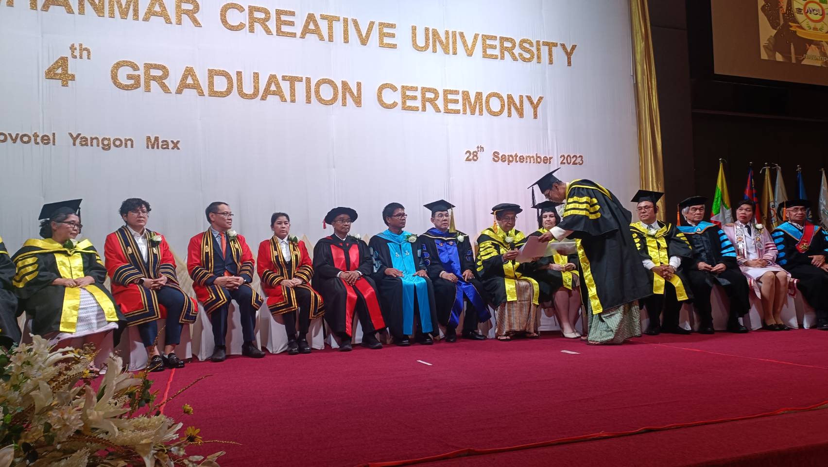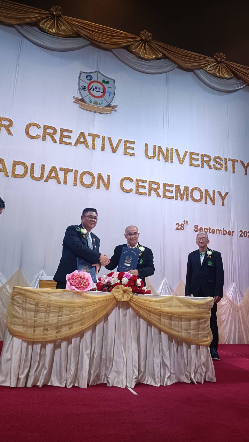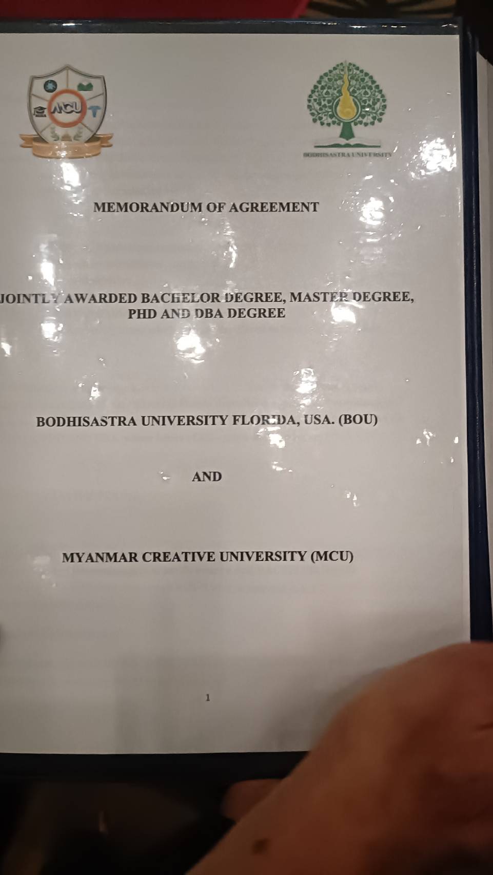 Prof. Dr. Sak Prasandee, CEO of BODHISASTRA UNIVERSITY FLORIDA, UNITED STATES OF AMERICA, along with faculty members and administrators, attended the signing ceremony of a cooperation agreement to produce graduates to receive 2 degrees between BOU and MCU Myanmar Creation University in Yangon on September 28, 2023, which is considered the beginning of a new type of education in a new world, namely the perfect BOU Cyber ​​University.